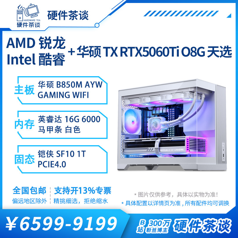 硬件茶谈 华硕5060ti 天选 i5 14600KF 78003D纯白海景房电脑主机