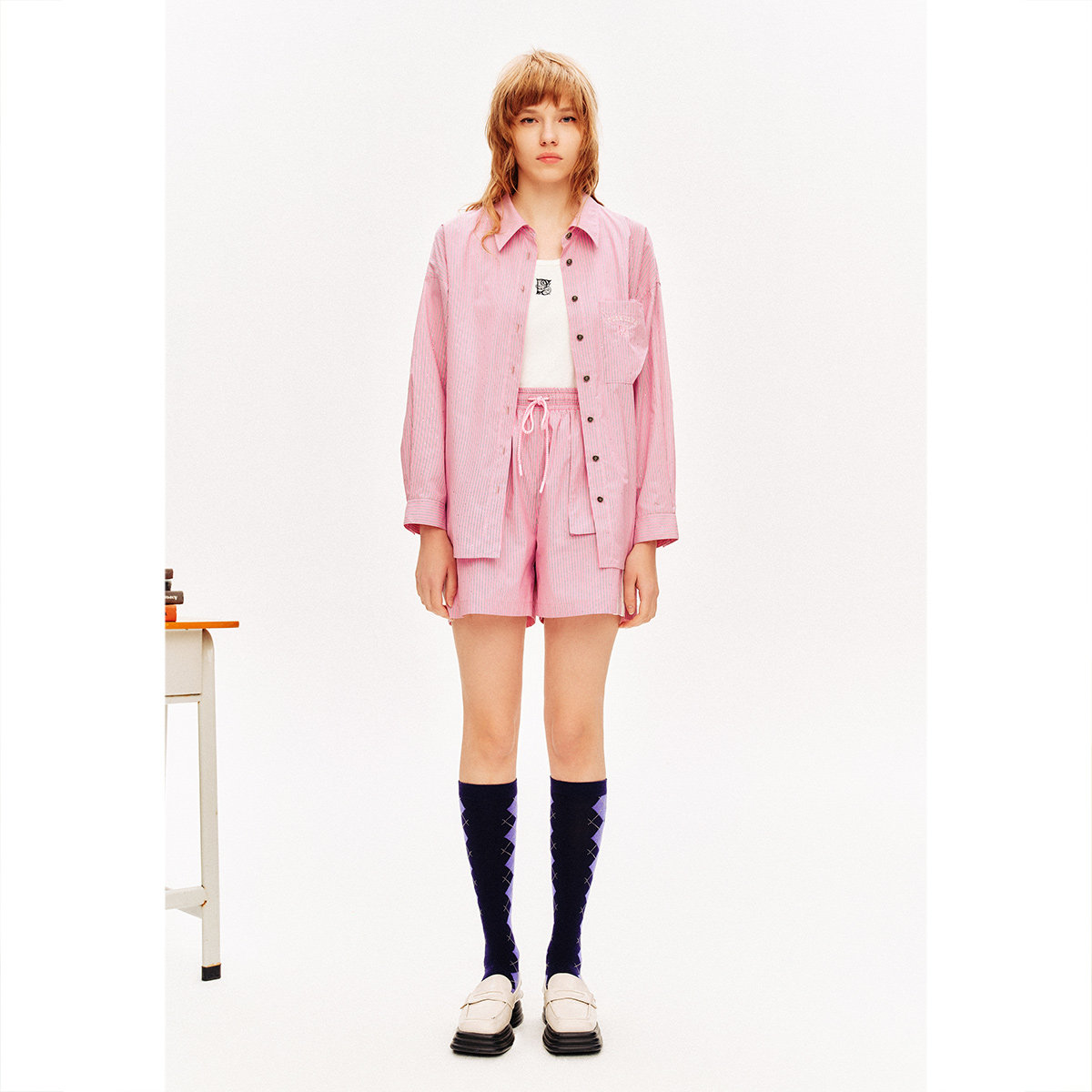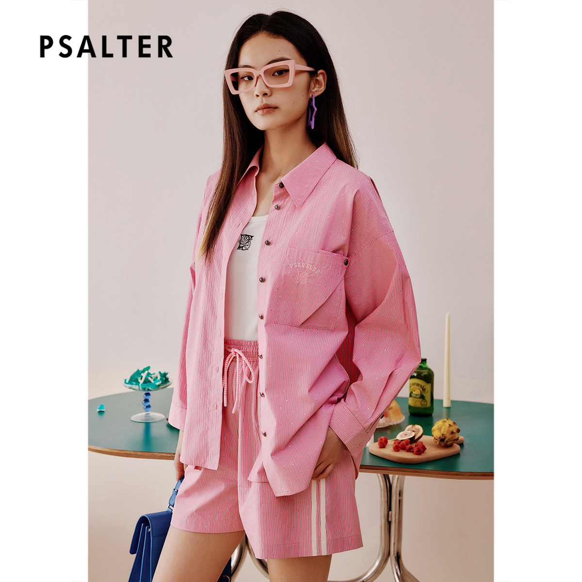 PSALTER诗篇系带松紧腰学院风烫钻条纹短裤休闲裤夏款