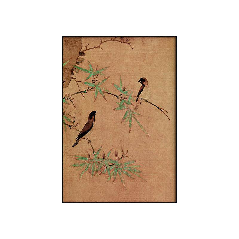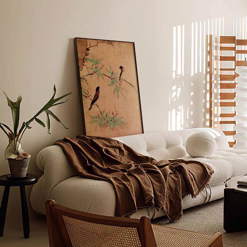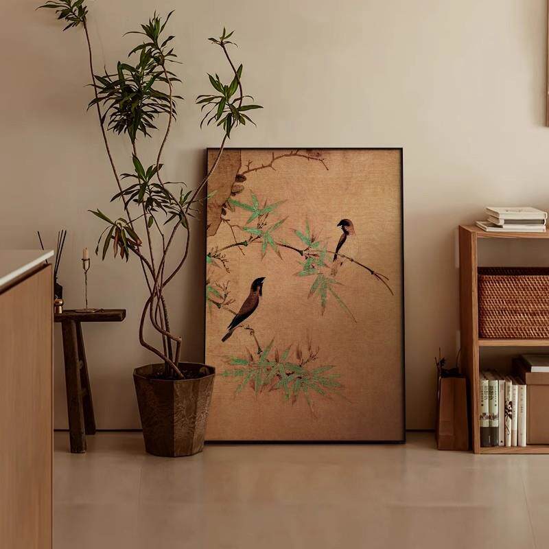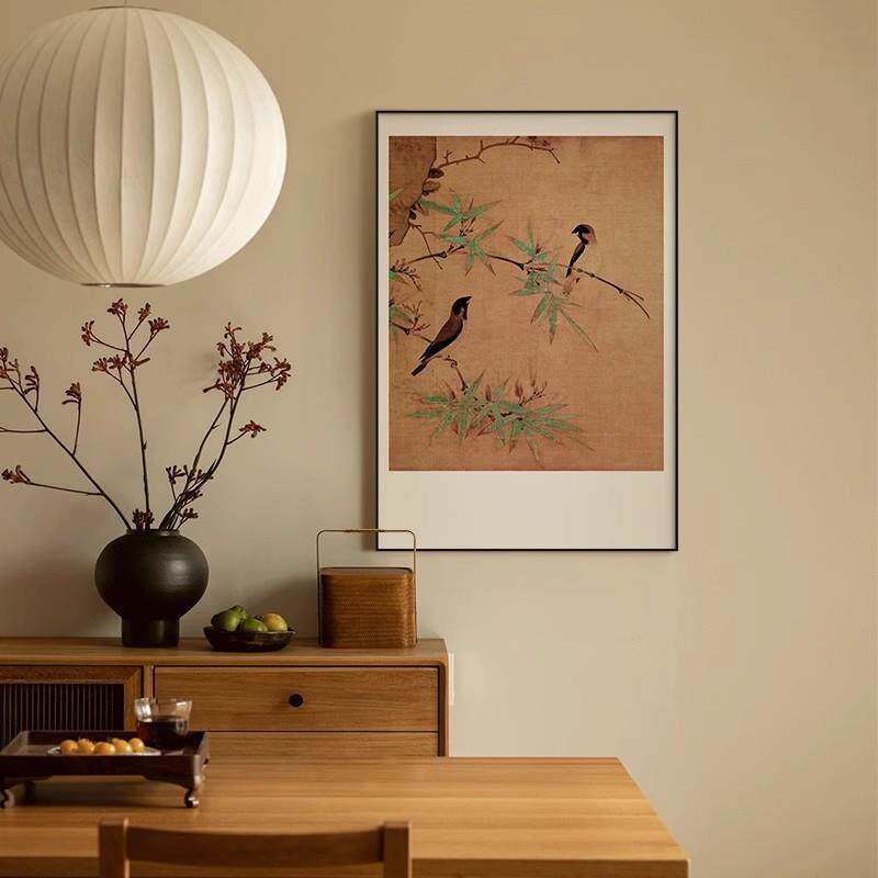 新古典中式玄关装饰画花鸟餐厅边柜墙上壁画侘寂风客厅背景墙挂画