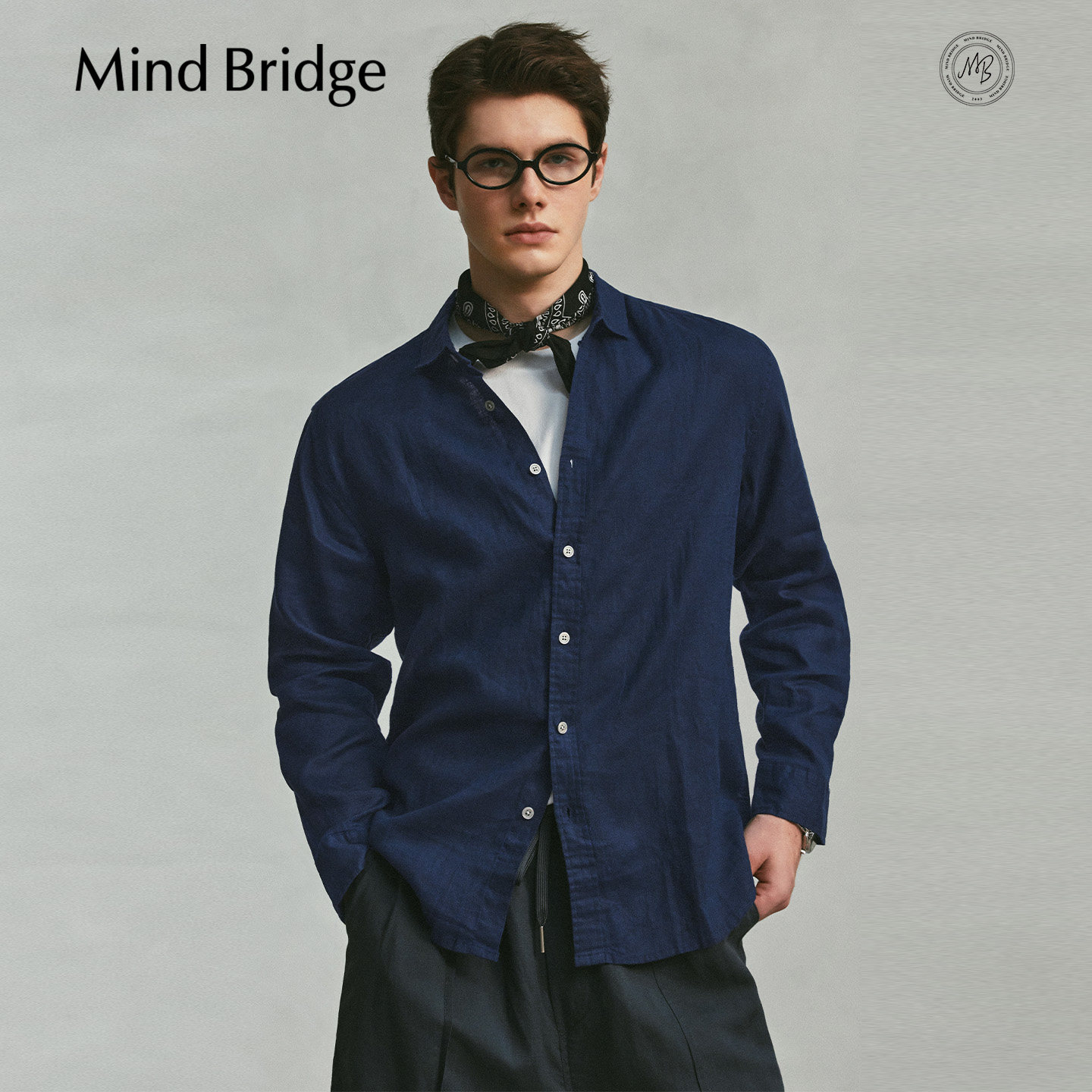 MindBridge【亚麻】男士法式复古休闲衬衣2026年春季松弛长袖衬衫