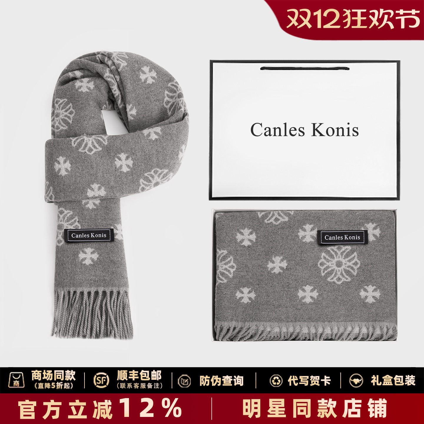 Canles Konis官方店灰色羊毛围巾女款2025新款冬加厚男士围脖披肩