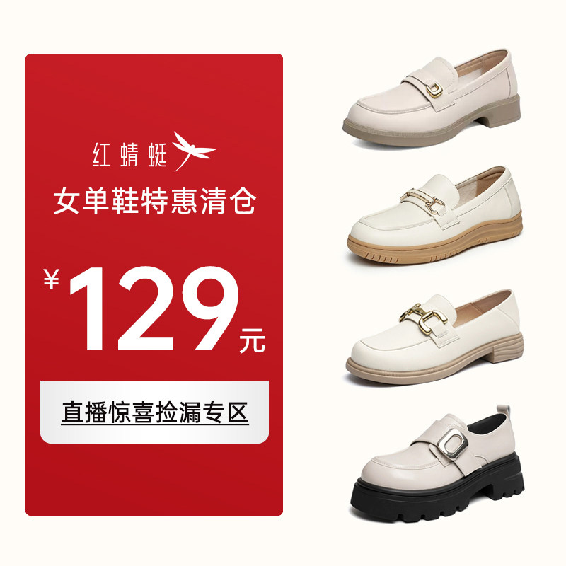 【直播特惠清仓】红蜻蜓女鞋乐福鞋通勤单鞋小皮鞋浅口单鞋高跟鞋