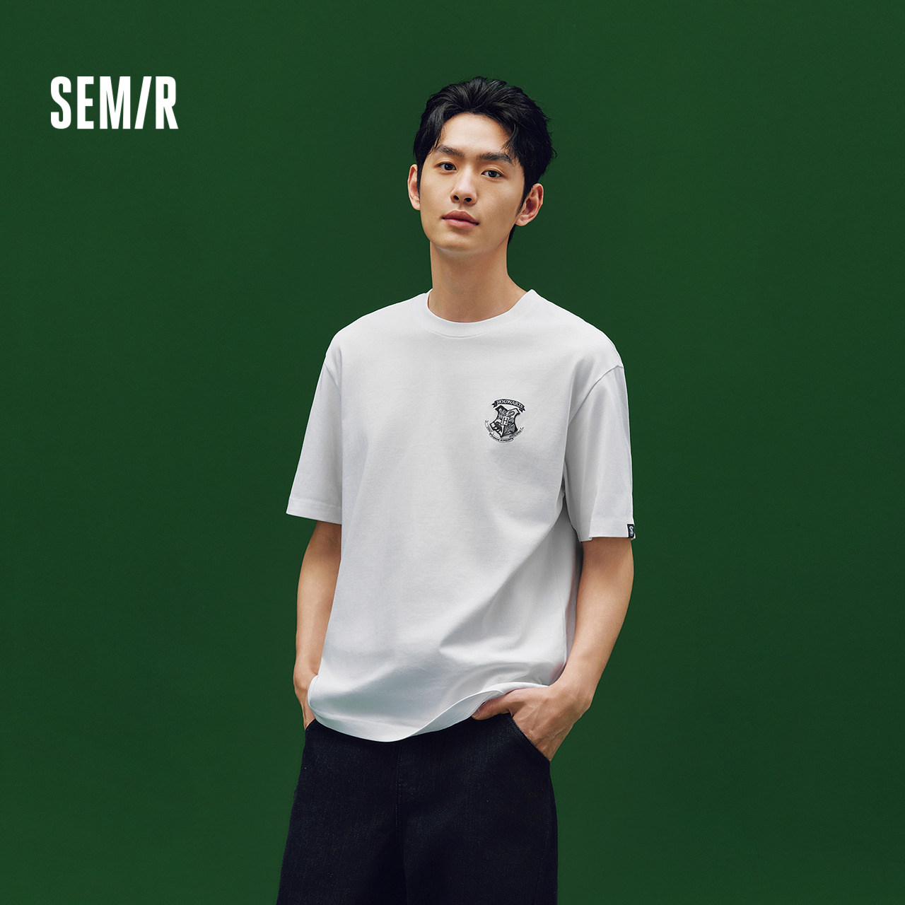 凉感T|森马哈利波特联名短袖T恤男夏季学院风绣花上衣抑菌针织衫