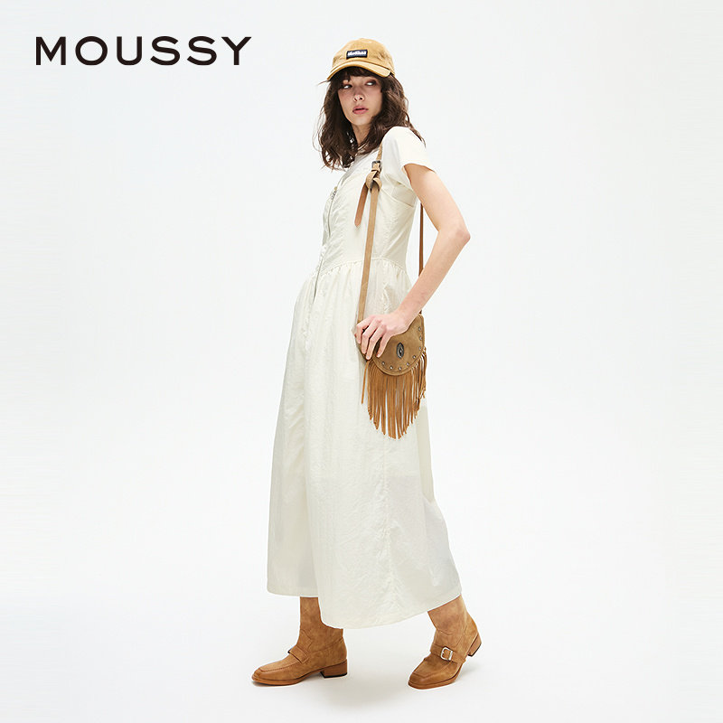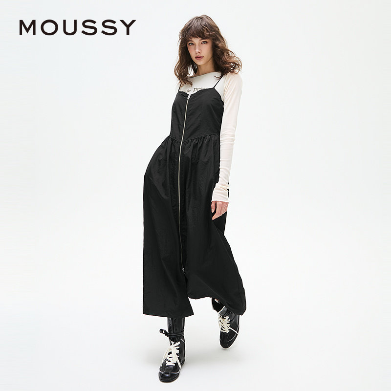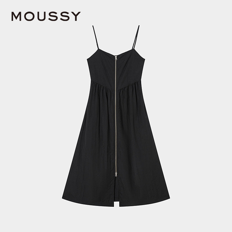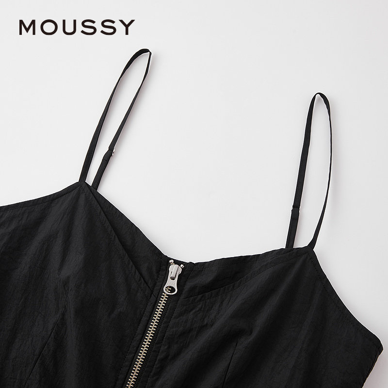 MOUSSY 2025春季新品机能风金属拉链开襟吊带连衣裙010IS633-4141