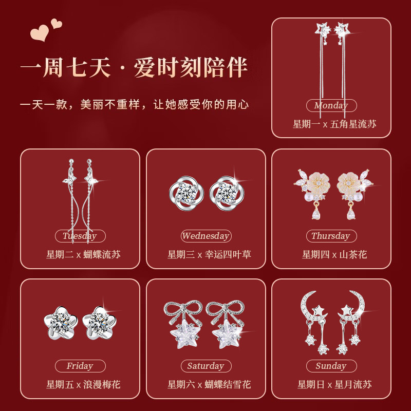 三八节礼物山茶花耳钉礼盒一周S925纯银针耳环轻奢高级感耳饰实用