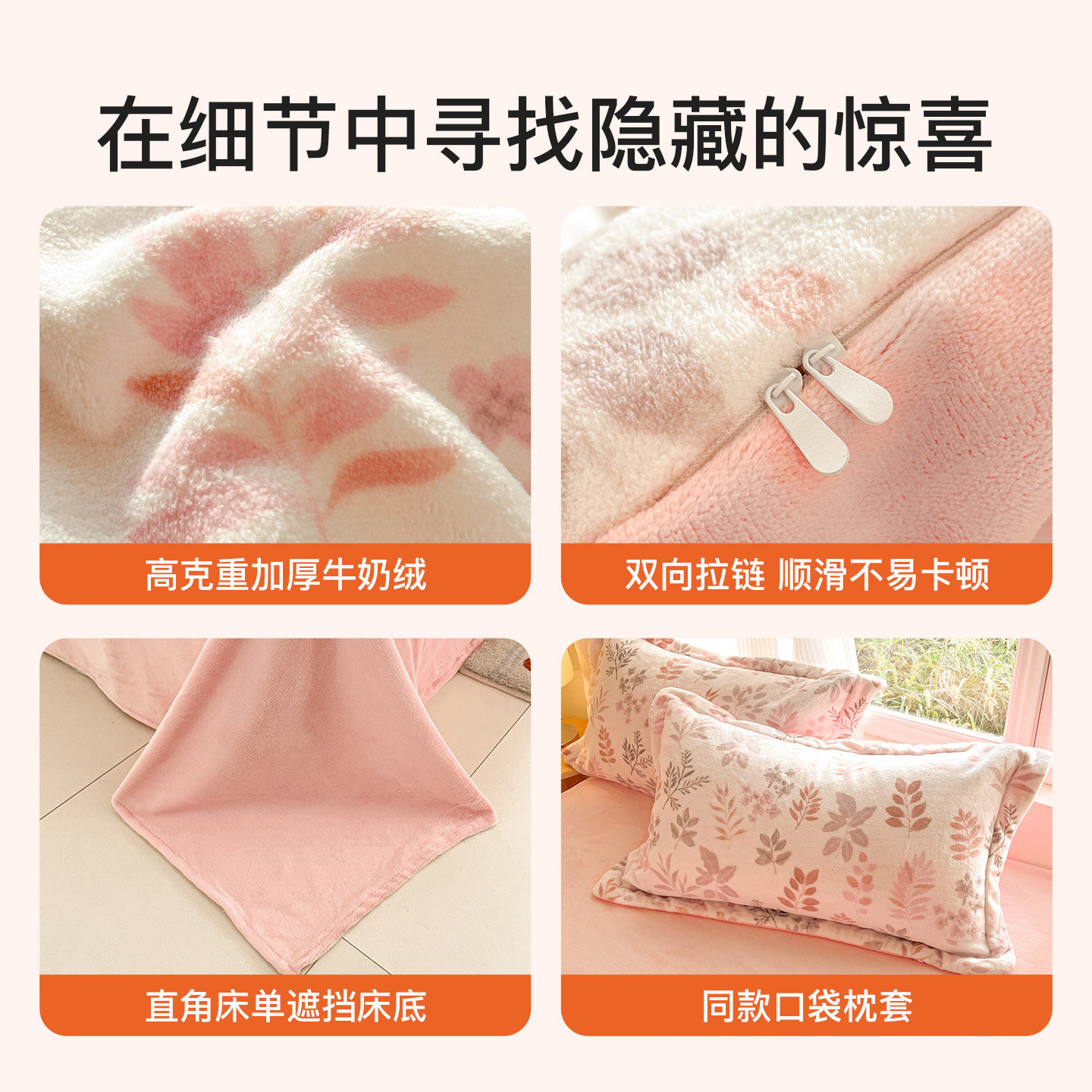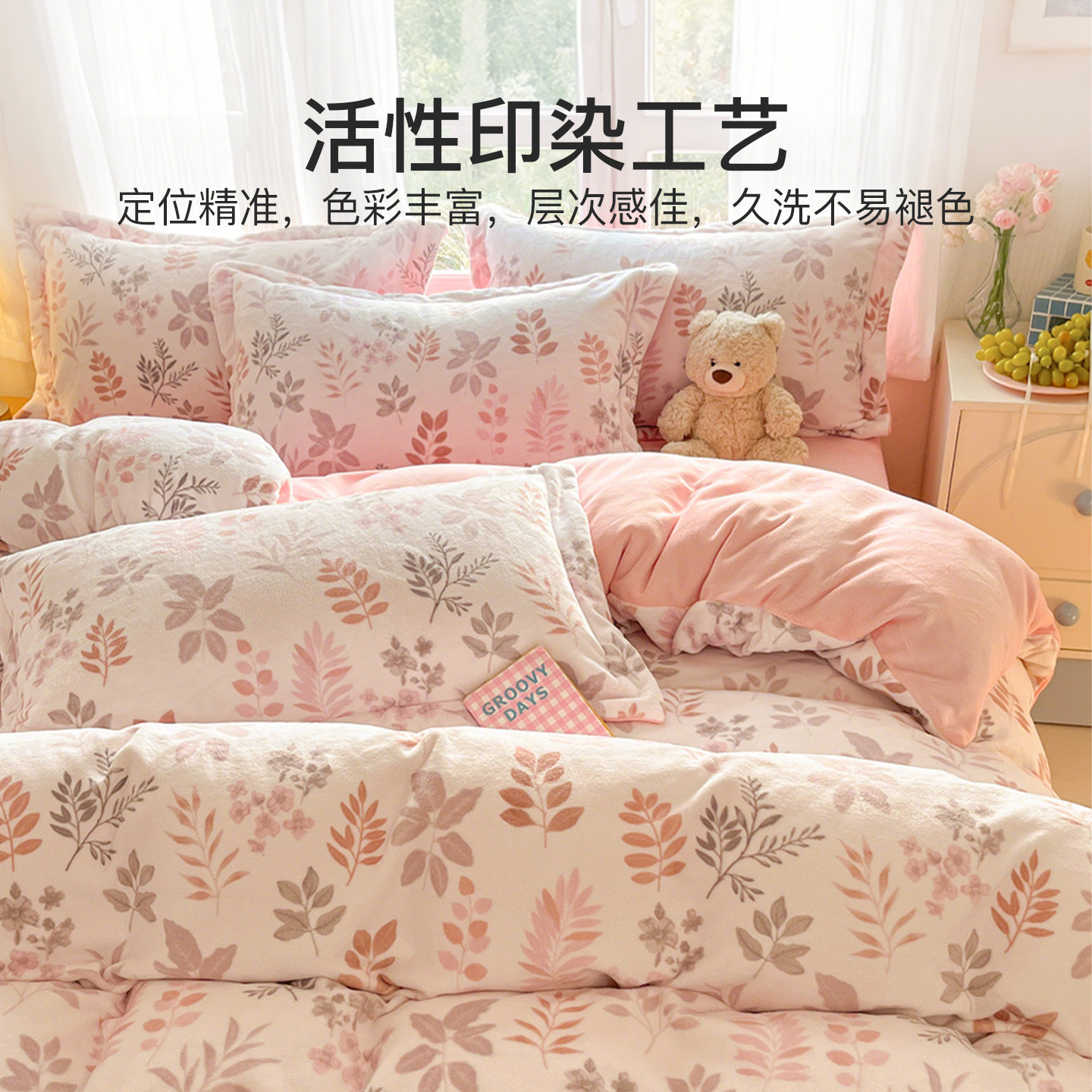 洁丽雅牛奶绒四件套冬季珊瑚绒床品被套床单加绒法兰绒床上三件套