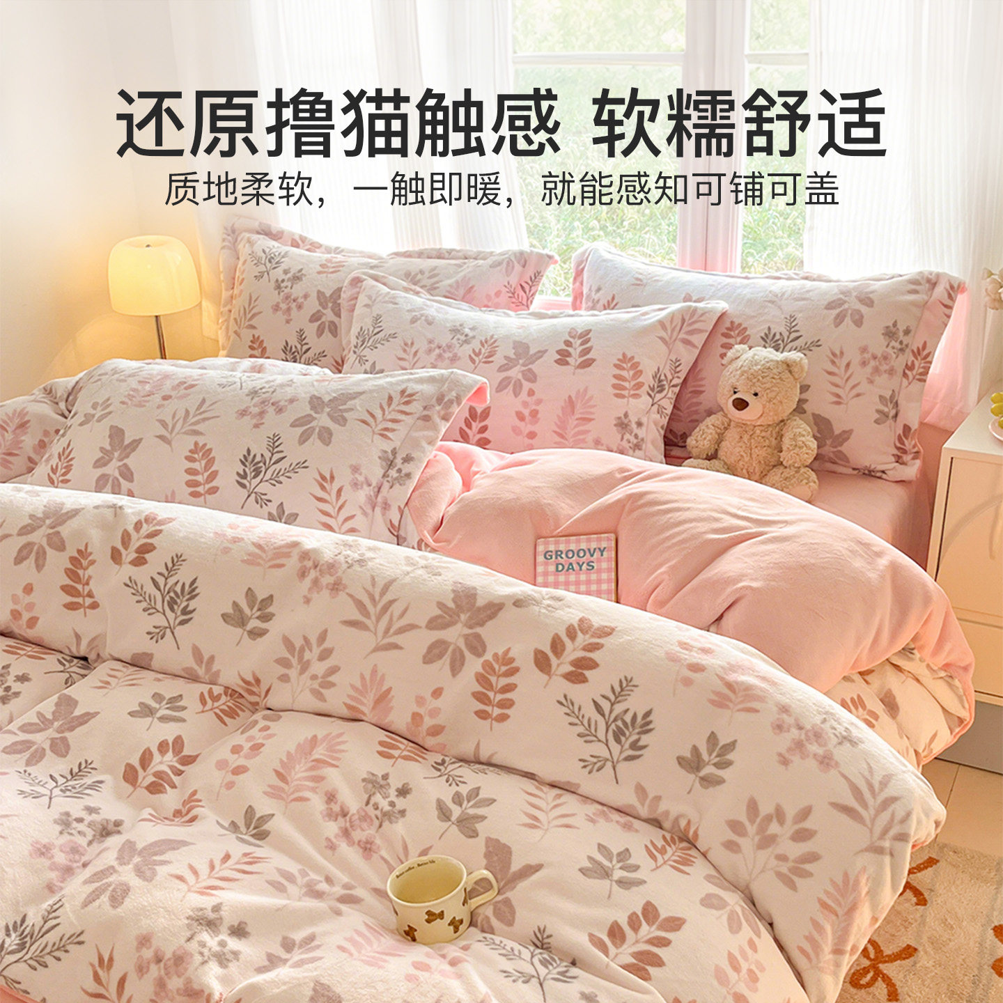 洁丽雅牛奶绒四件套冬季珊瑚绒被套床单加绒毛绒法兰绒床上三件套