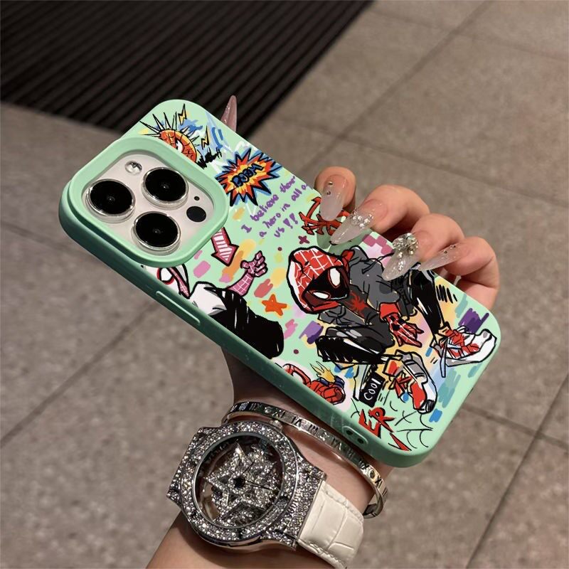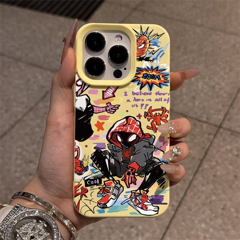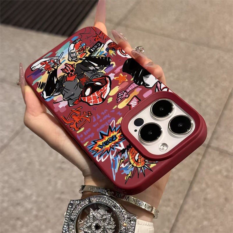 涂鸦蜘蛛侠适用于苹果17pro手机壳iphone16/15promax新款时尚14plus高级13promax防摔大孔12/11promax保护套