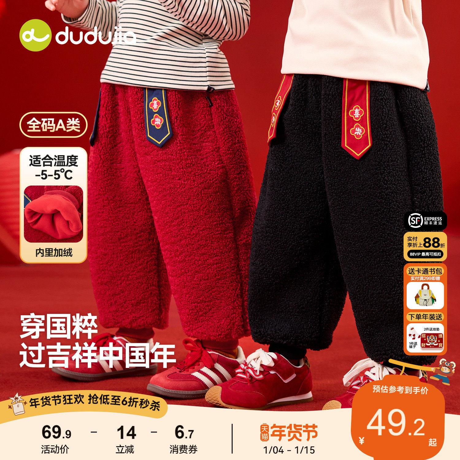 嘟嘟家宝宝拜年服喜庆过年装唐装新年长裤男童裤子冬季儿童新中式