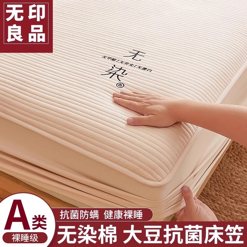 无印良品A类防水抗菌大豆夹棉床笠床罩隔尿保护罩全棉夹棉床单套