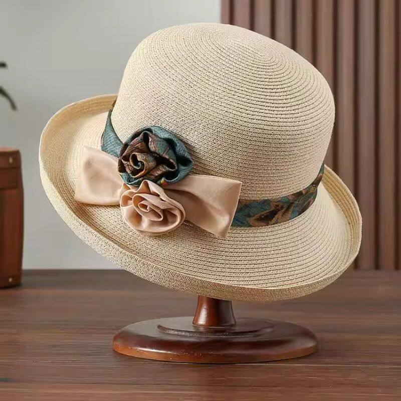 六片折叠扇子帽子两用亚麻花草帽男女遮阳太阳帽户外钓鱼帽遮阳帽