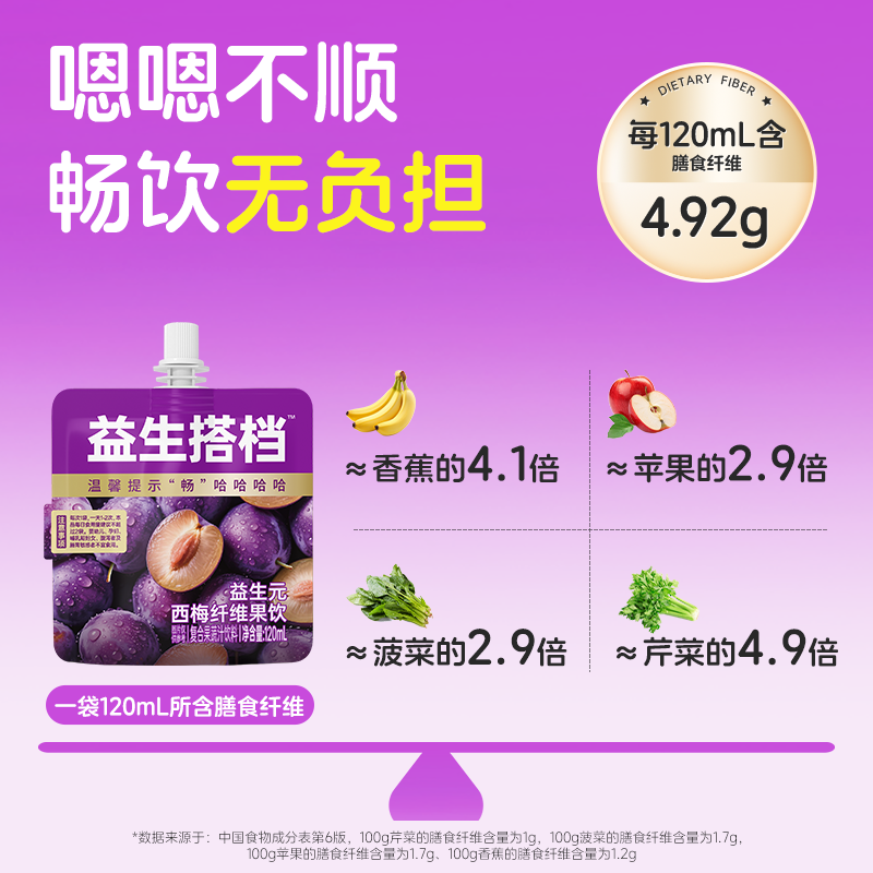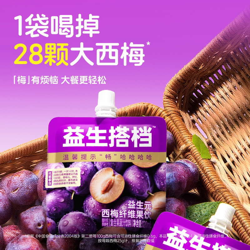 益生搭档益生元西梅纤维果饮饮料果蔬汁纯袋120ML*4袋果汁柠檬