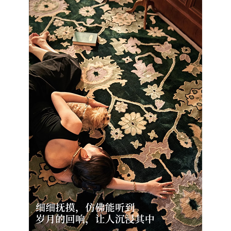 【孤品2折】蜡笔派爱莲地毯法式轻奢复古客厅卧室床边毯沙发圆形