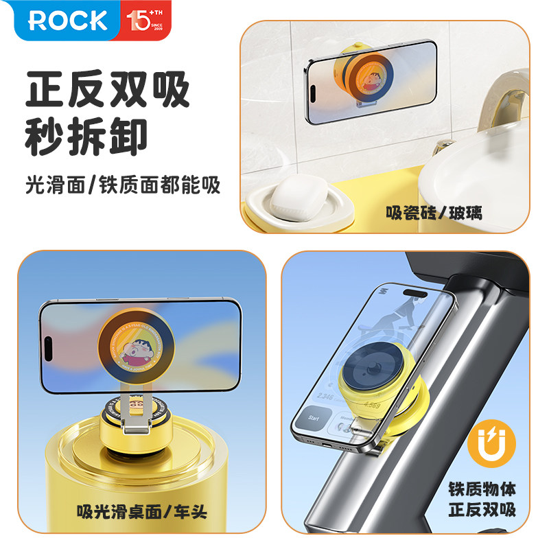 ROCK哆啦A梦电动吸盘磁吸手机支架2025新款懒人真空吸附手机架折叠卡通可爱多功能通用桌面直播车载支撑架
