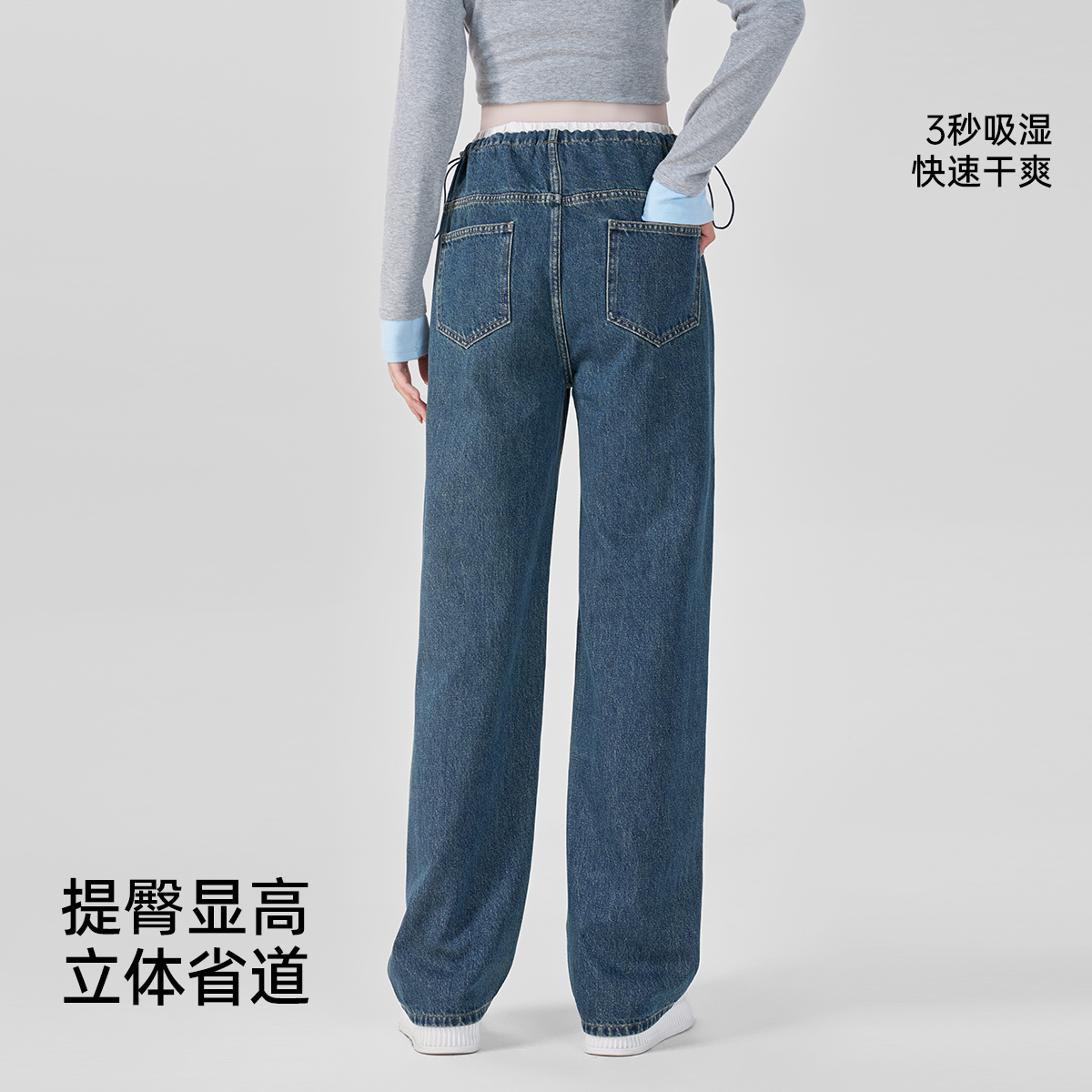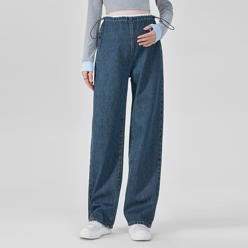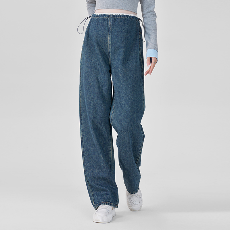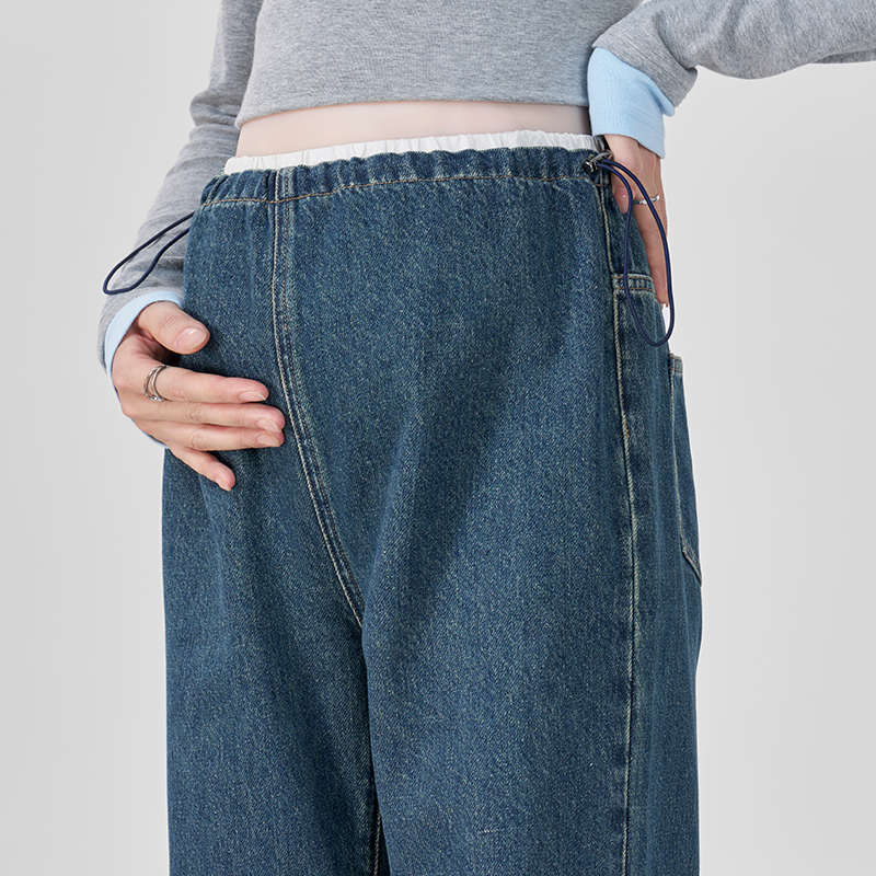孕妇裤子秋季外穿2025新款秋冬抽绳小个子直筒牛仔裤加绒加厚长裤