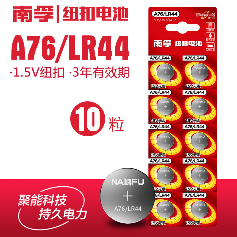 南孚LR44纽扣电池AG13碱性L1154/A76/357A玩具游标卡尺遥控器手表