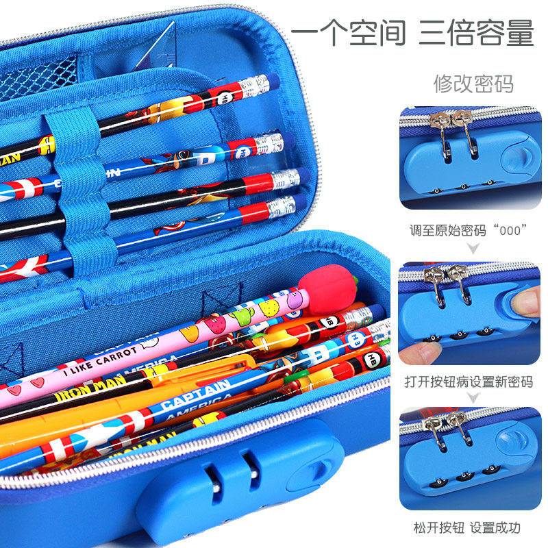迪士尼儿童笔袋小学生可爱卡通大容量笔袋文具盒蜘蛛侠密码锁笔袋冰雪奇缘笔袋手提笔袋铅笔盒简约漫威笔袋
