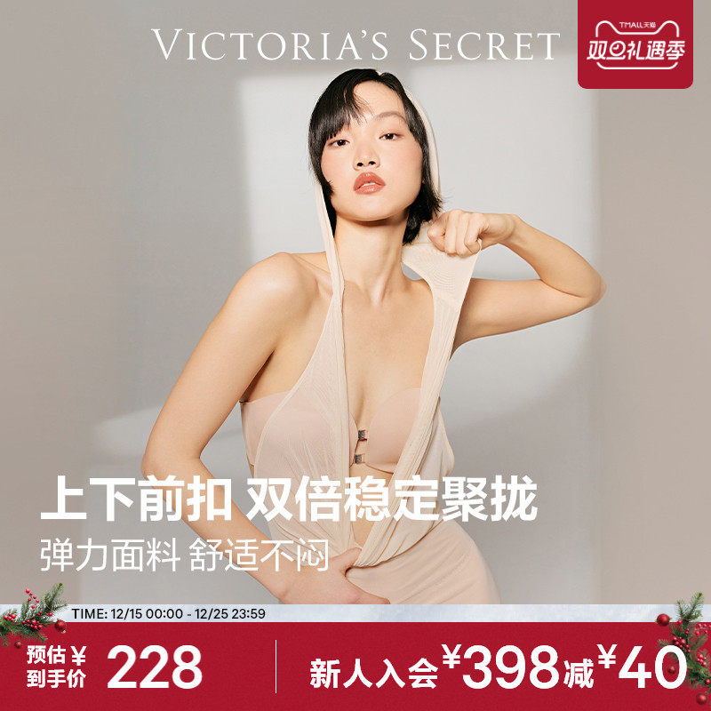 维密圆润聚拢前扣式无肩带抹胸文胸软胶圈防滑粉底液内衣女