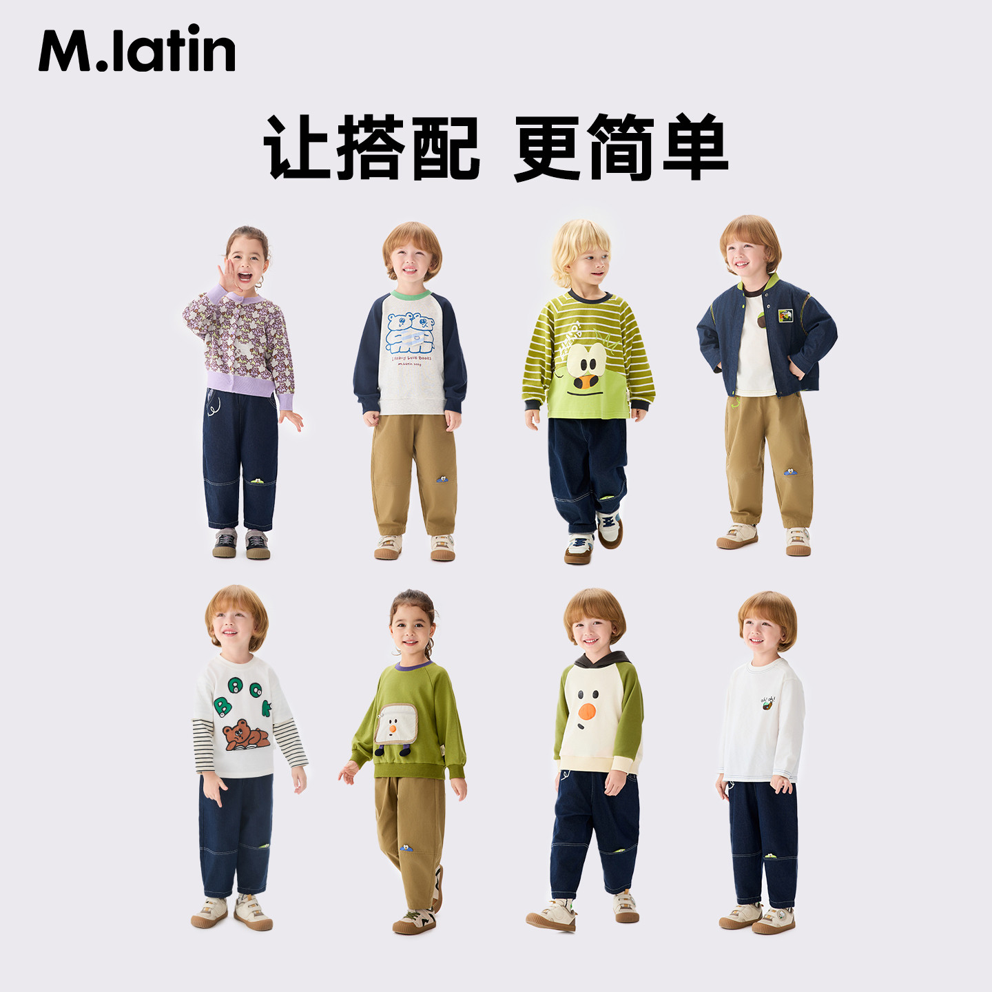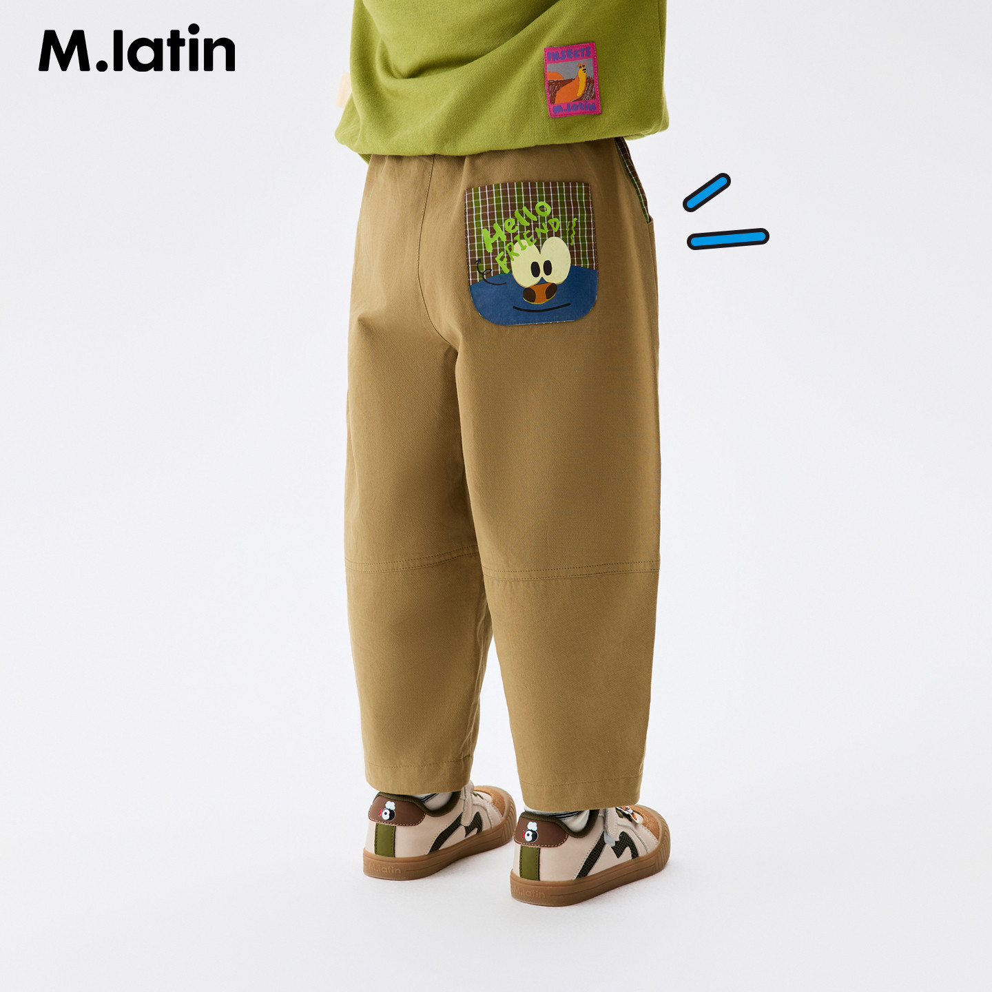 马拉丁儿童裤子26春装新款男大小童撞色格子布经典版型梭织长裤