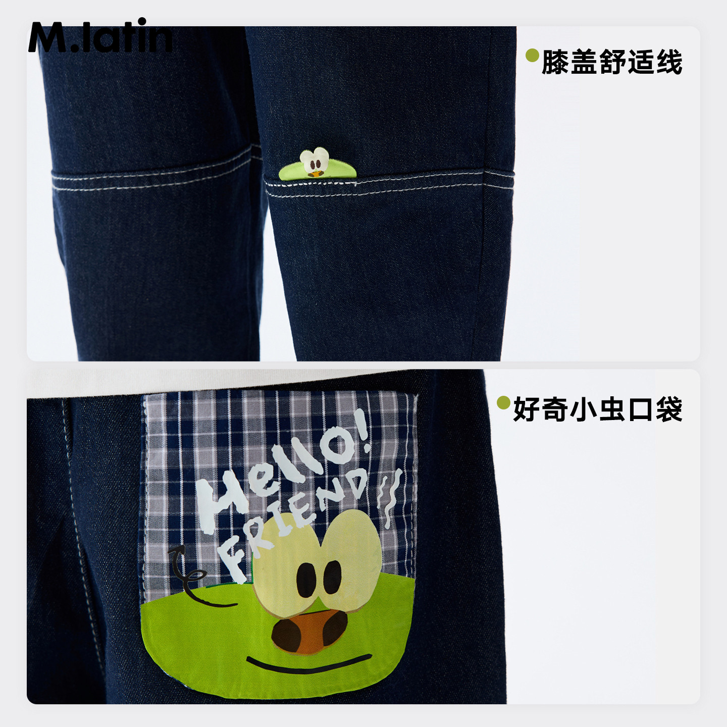 萌趣小虫鼓鼓织标撞色牛仔裤梭织长裤