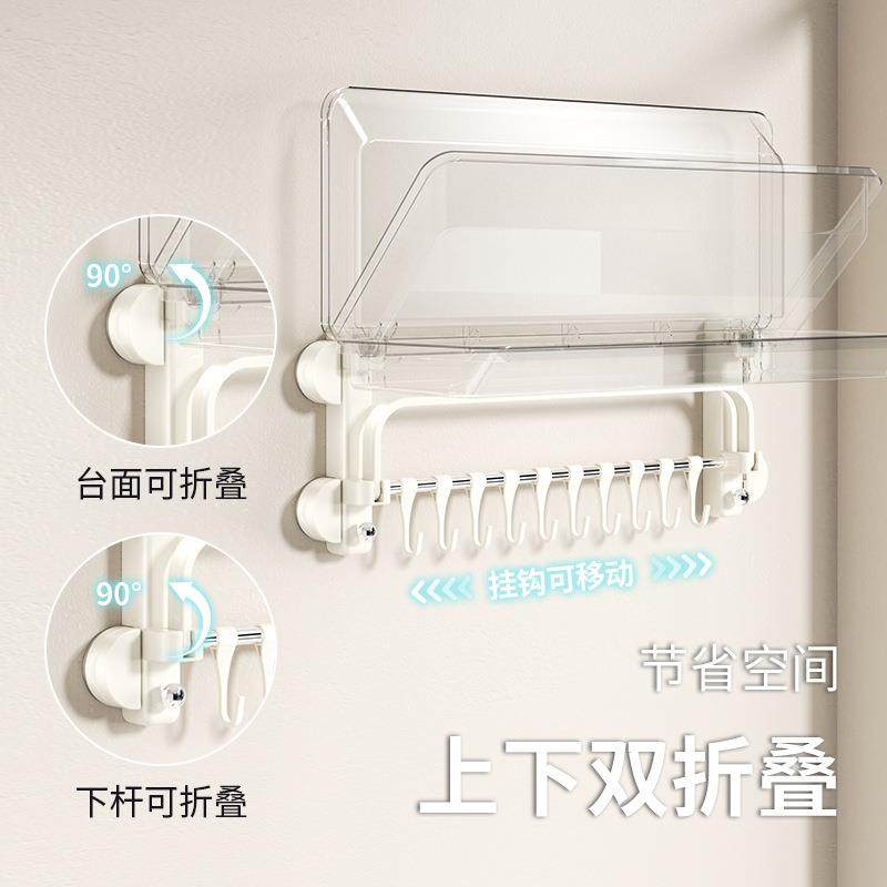 吸盘毛巾架免打浴室厕所置架物墙上一体淋浴房卫孔巾生间折叠无品牌/浴架