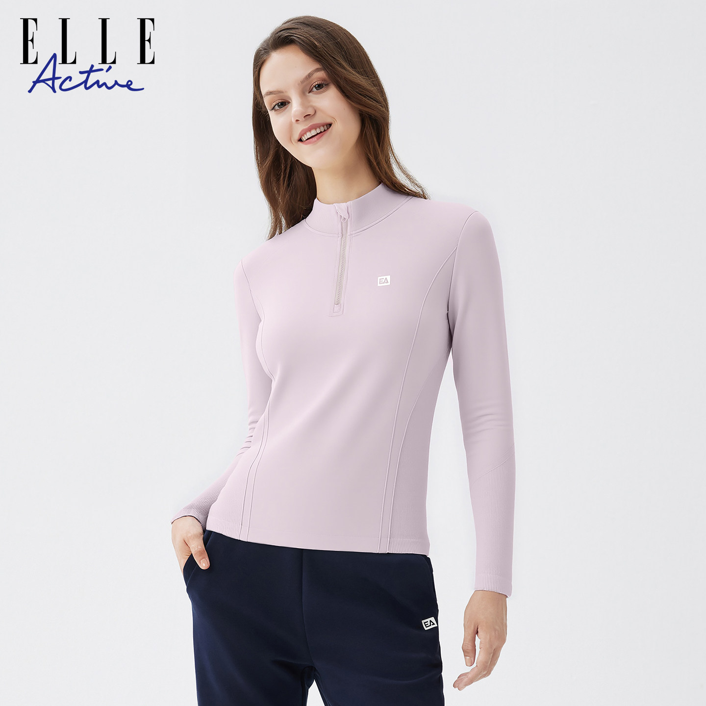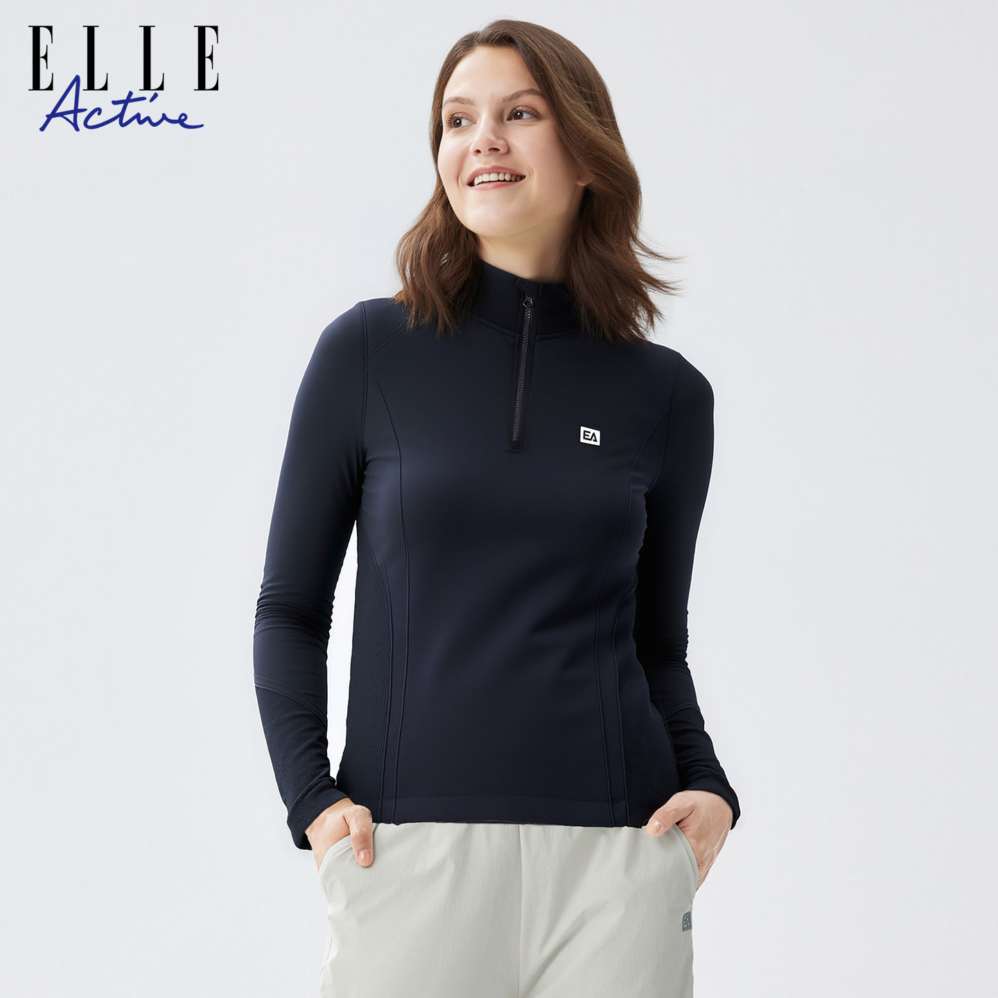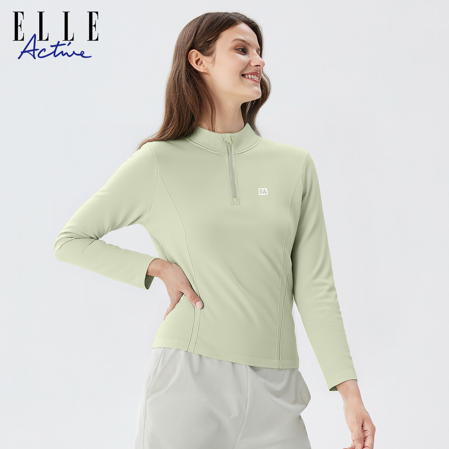 ELLE Active一体织运动上衣女潮搭户外休闲半拉链立领长袖t恤显瘦