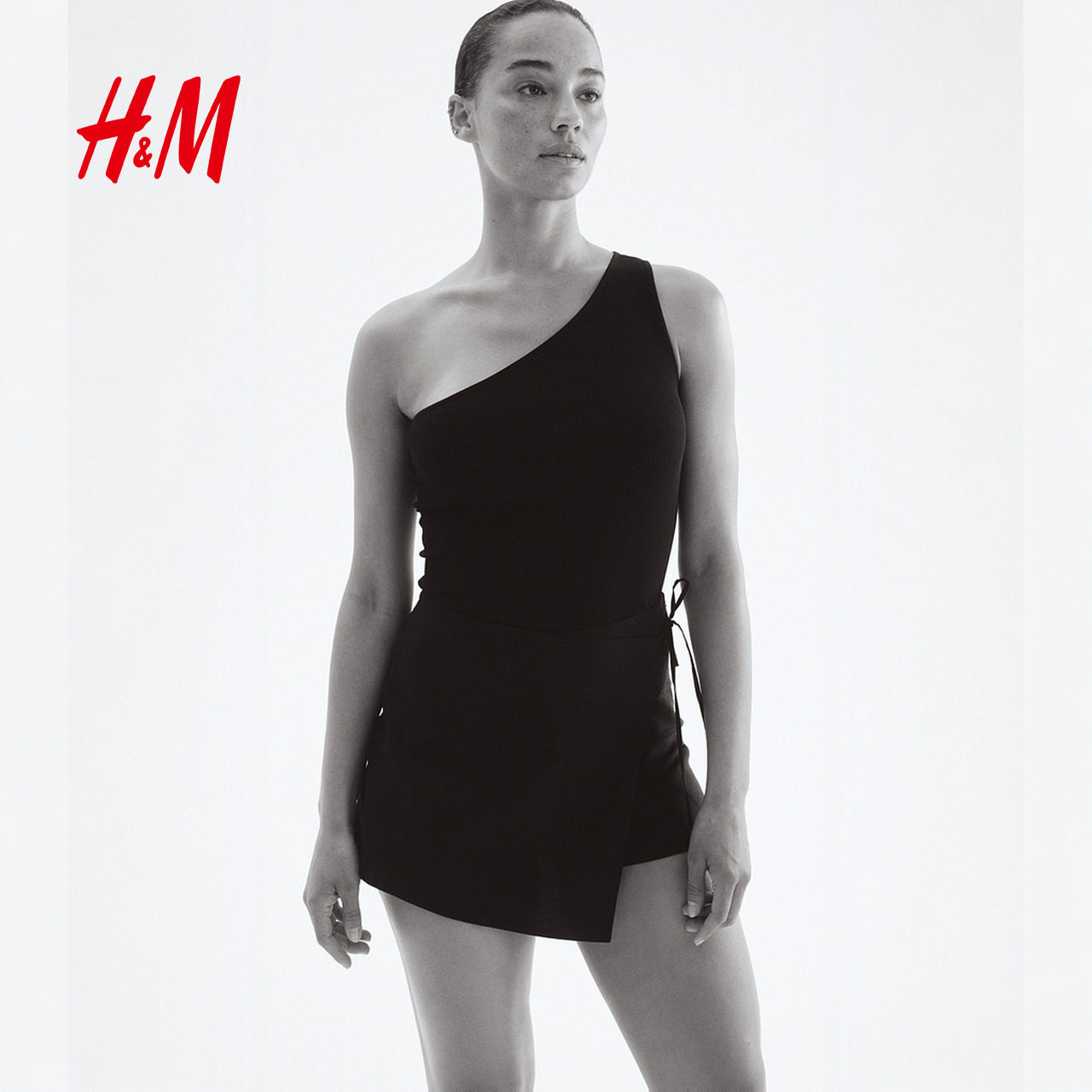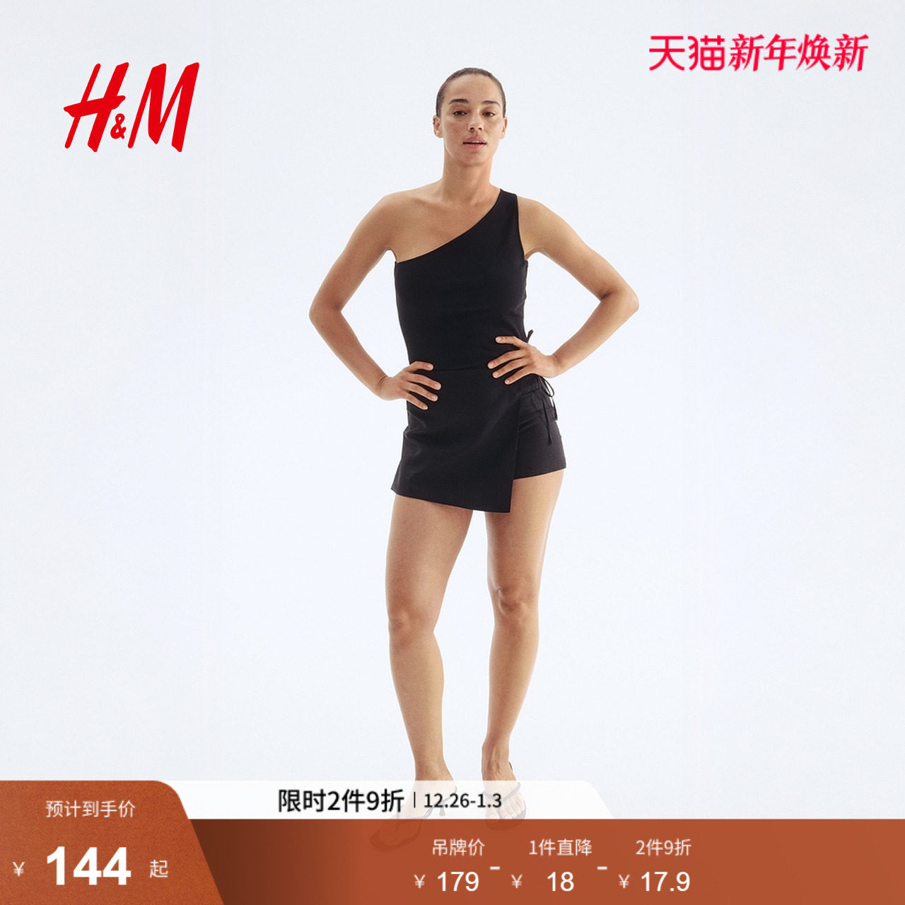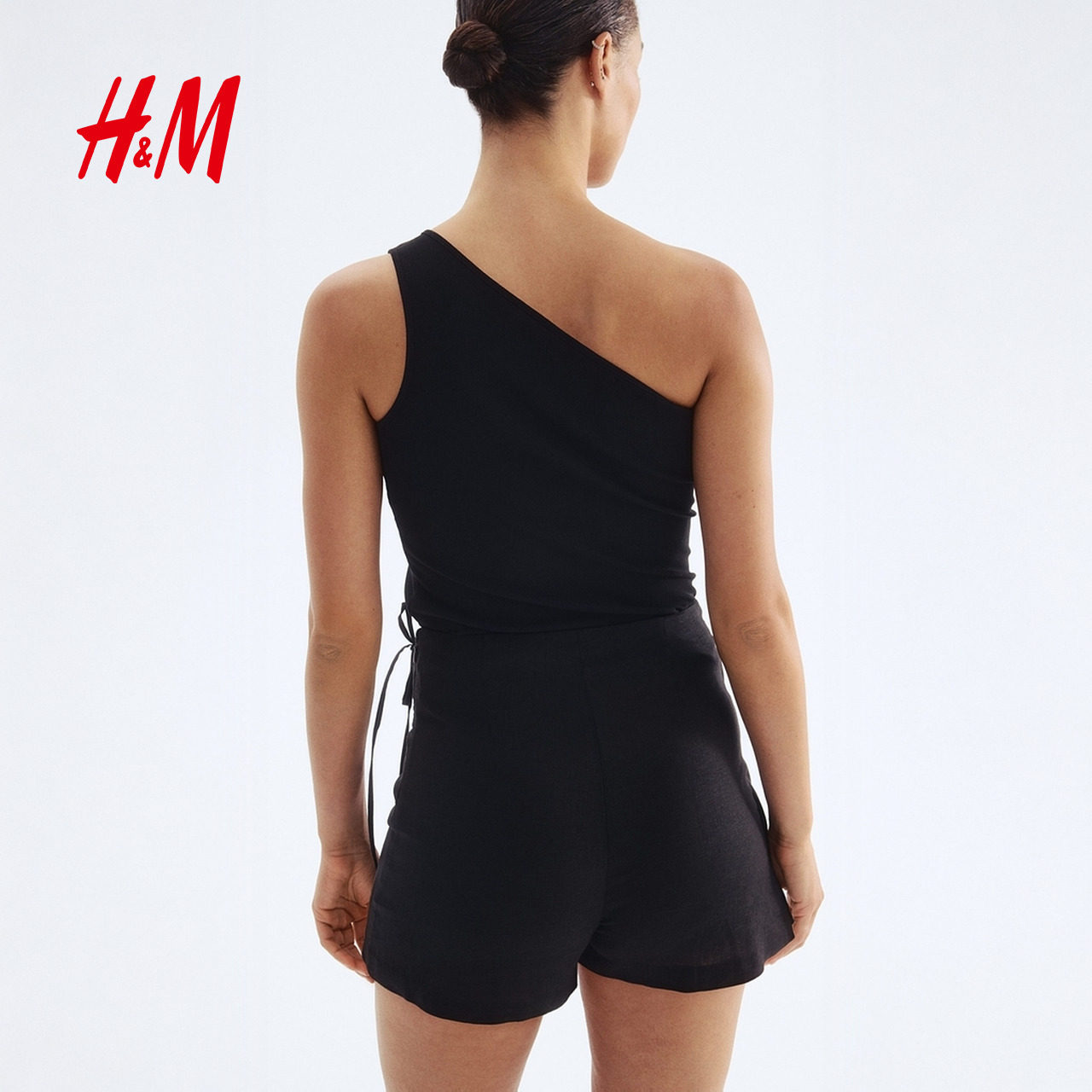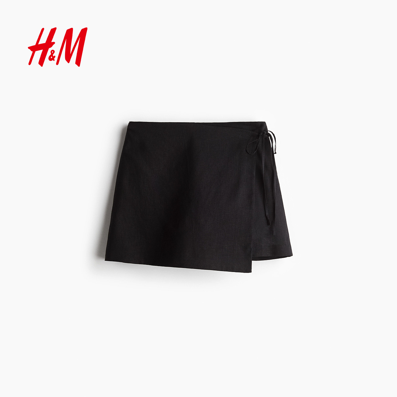 HM女装休闲裤2025冬季新款时尚气质亚麻混纺围裹式短裙裤1288495