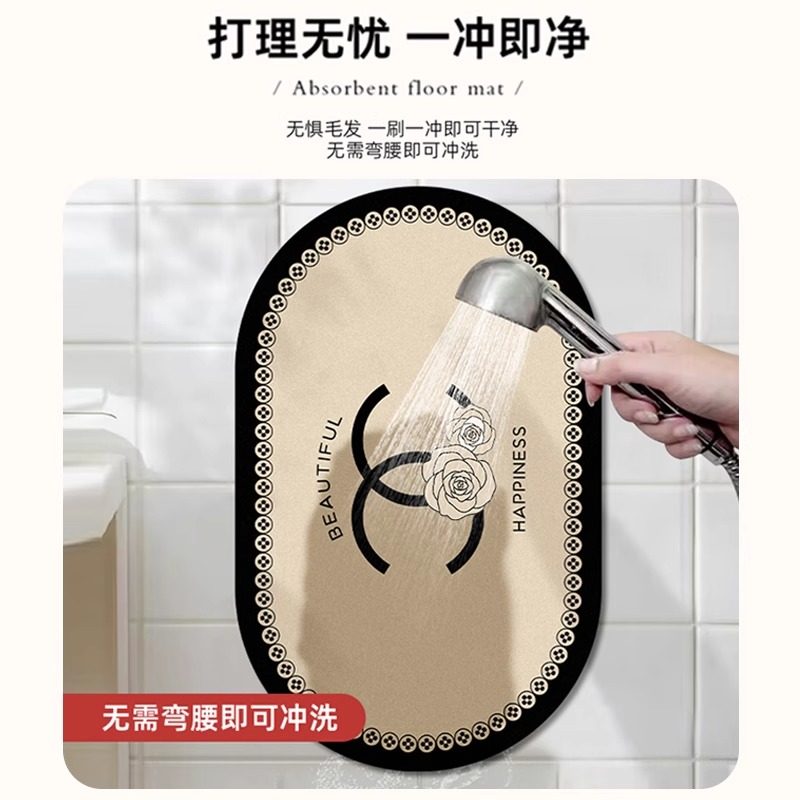 小香风硅藻泥浴室吸水地垫家用卫生间门口高级感垫子防滑耐磨地毯