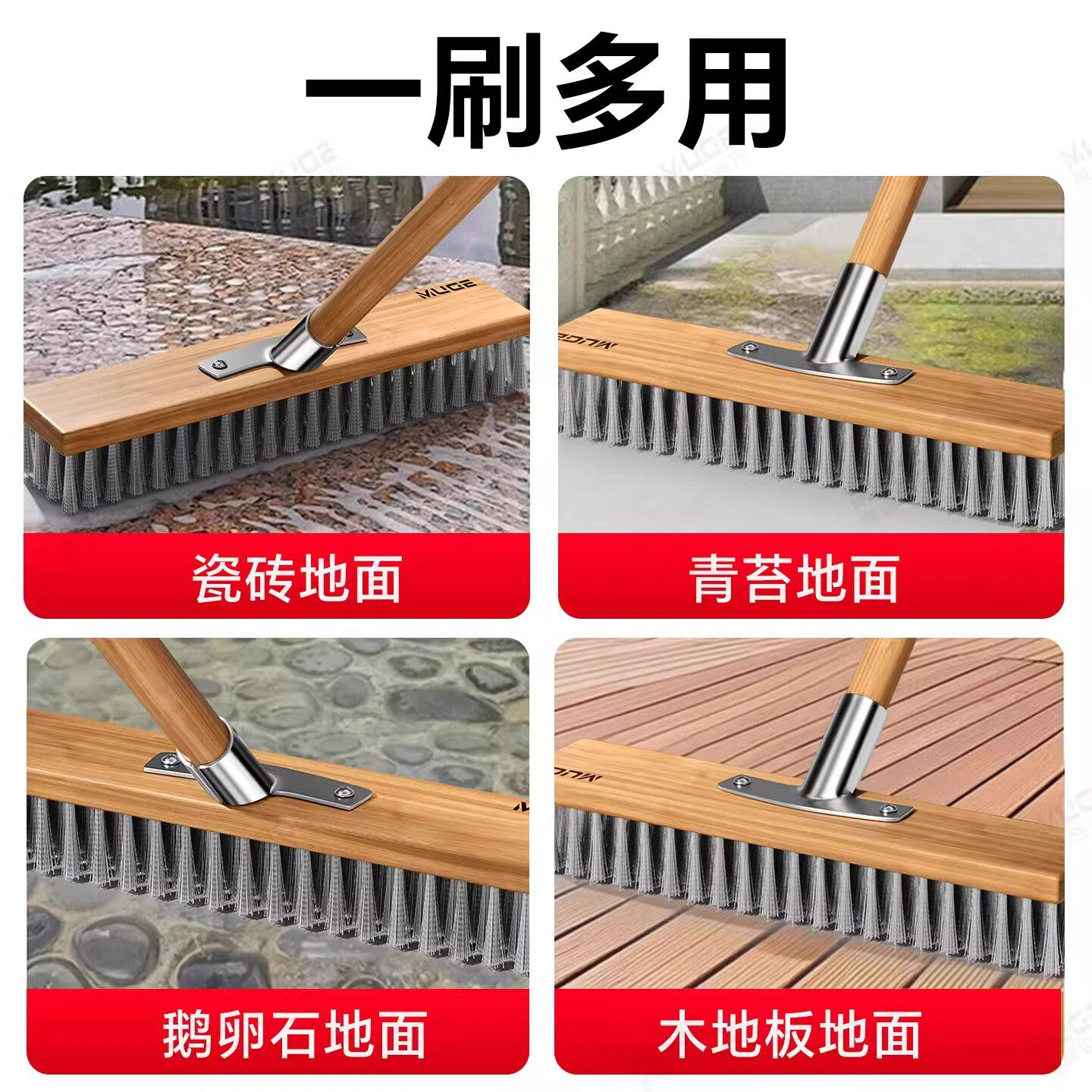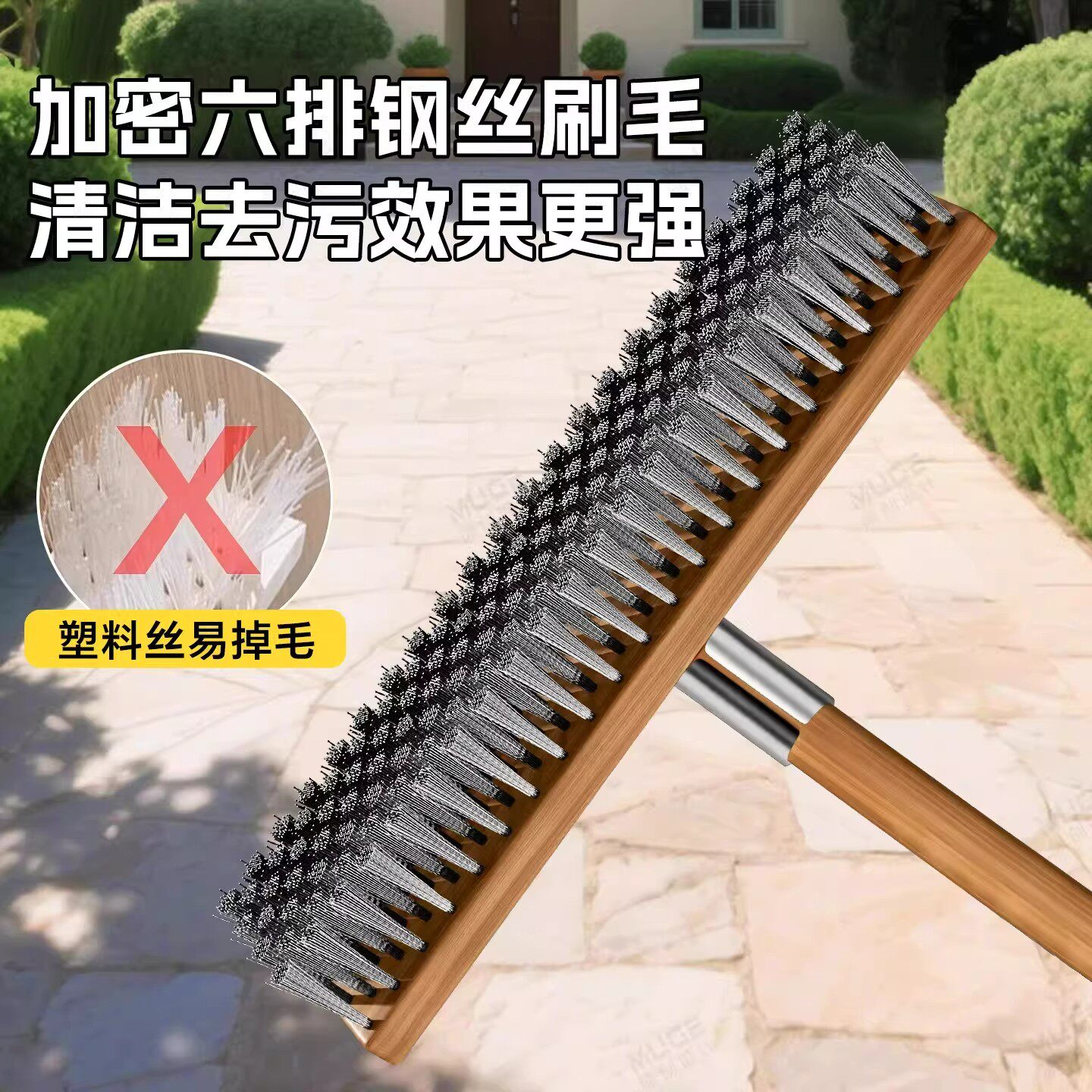 不锈钢钢丝刷地板刷子硬毛去青苔铁刷子长柄户外洗地刷清洁神器