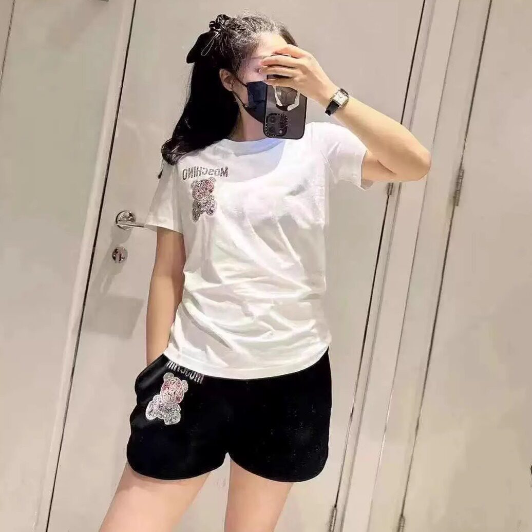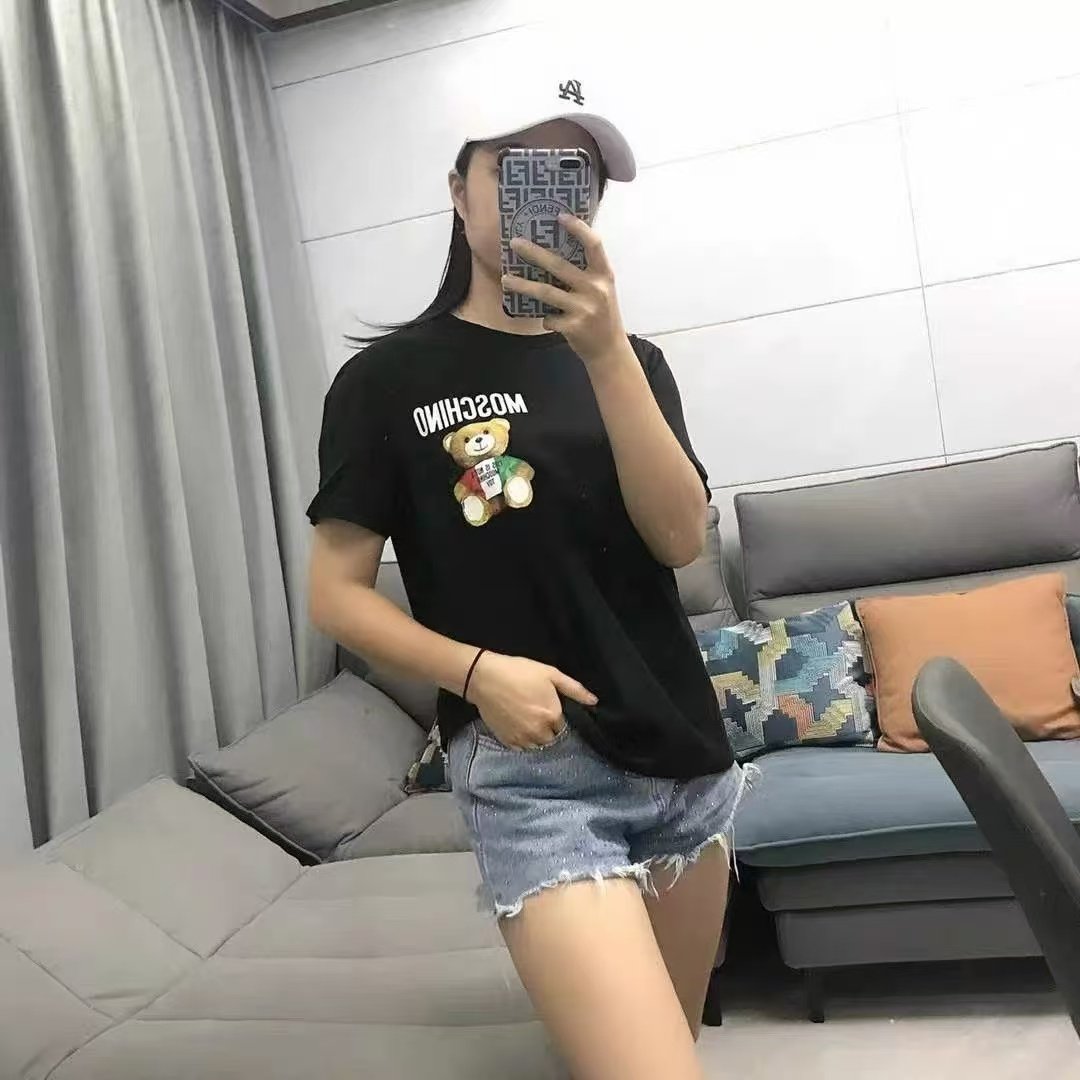 正确版25夏季新款mos三色小熊修身款字母印花小熊圆领休闲短袖女