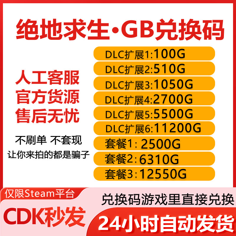 PUBGG币CDK绝地求生G币兑换码游戏币端游吃鸡金币皮肤点券gb充值