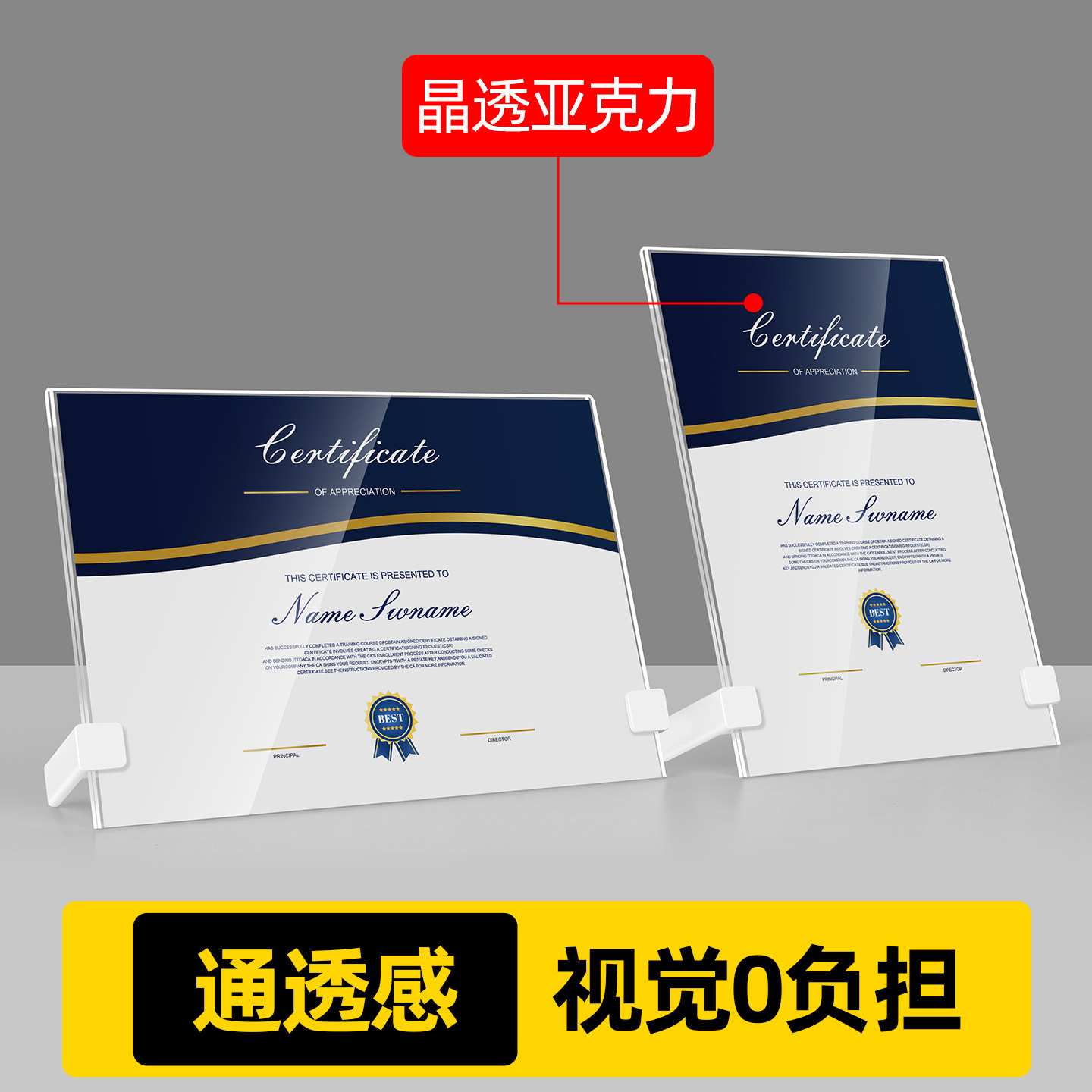 a4证书框授权书框架证件摆台亚克力相框荣誉证书框定制奖状展示框