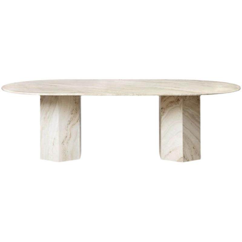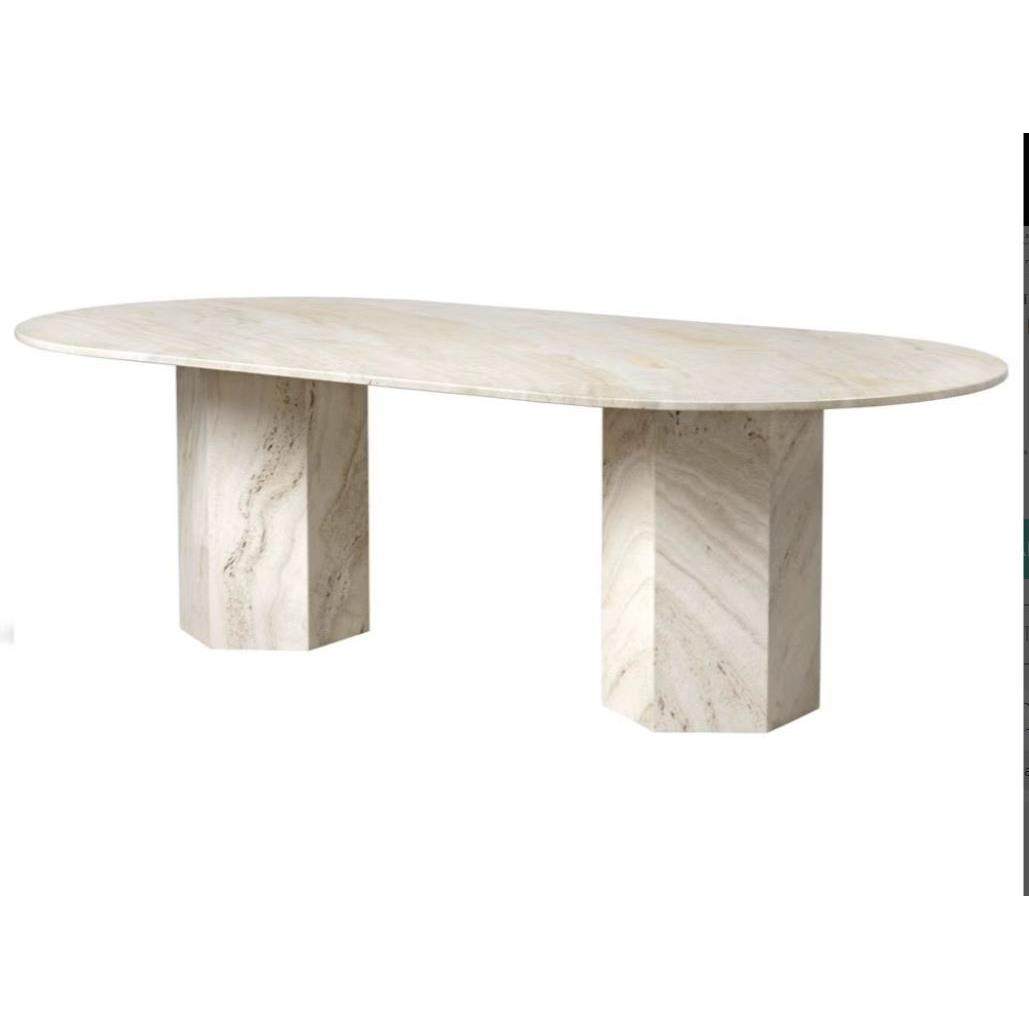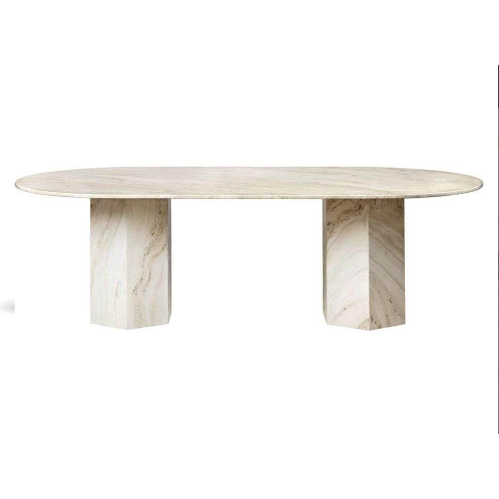 天然大理石餐桌现代简约设计师桌异型桌子别墅椭圆形台面大桌