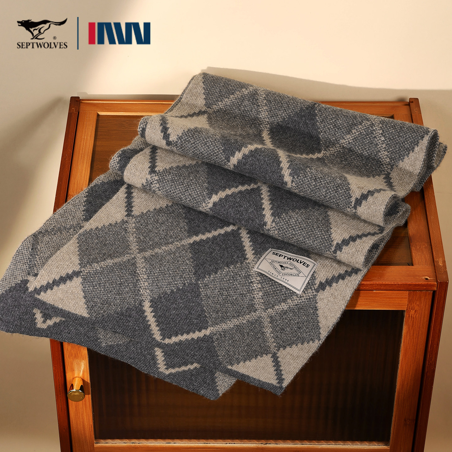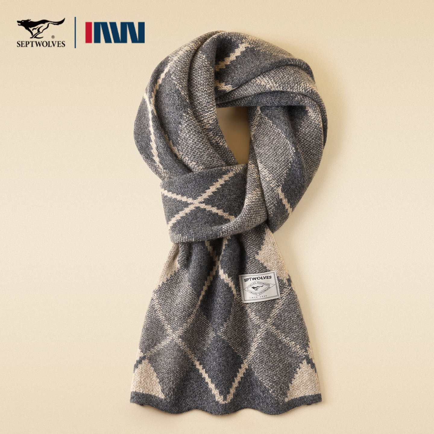 七匹狼纯山羊绒围巾男士驼色高档商务风格纹围脖加厚保暖生日礼物
