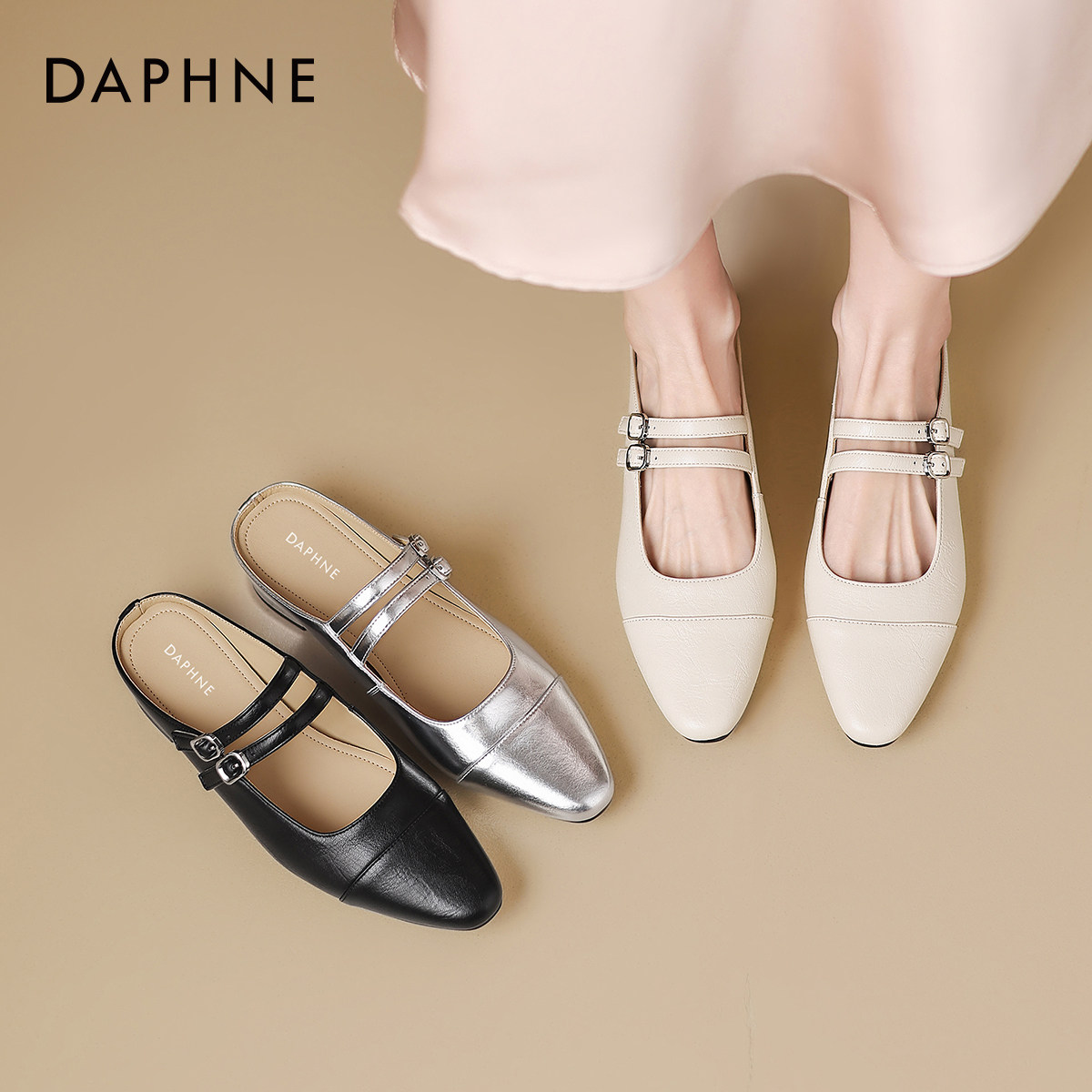 达芙妮包头半拖女鞋外穿2026新款软底粗跟凉拖鞋一脚蹬懒人穆勒鞋