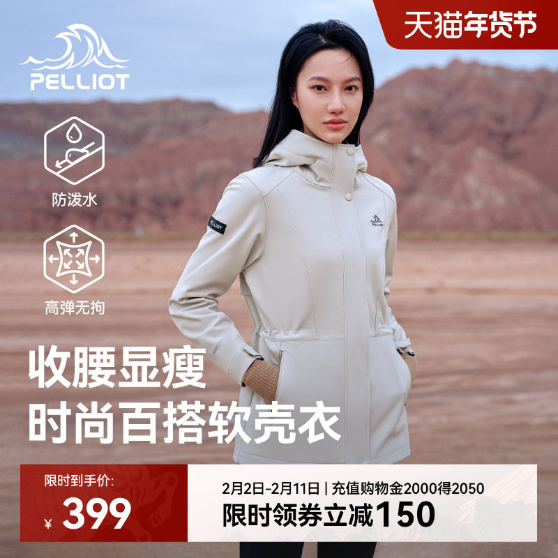 伯希和户外软壳衣女款冬季新款防风保暖运动冲锋外套收腰夹克上衣