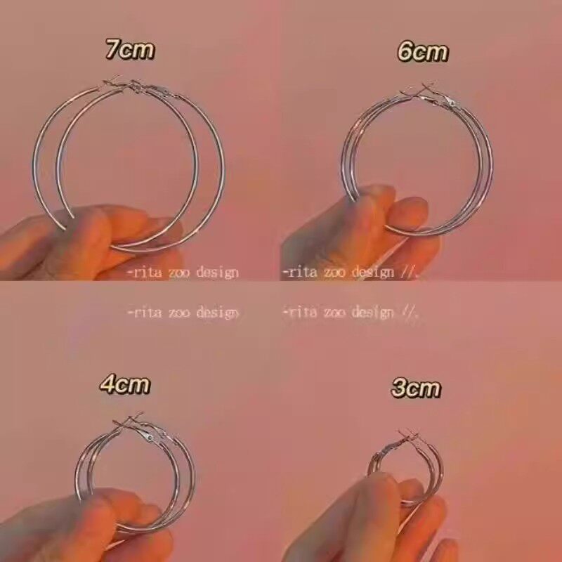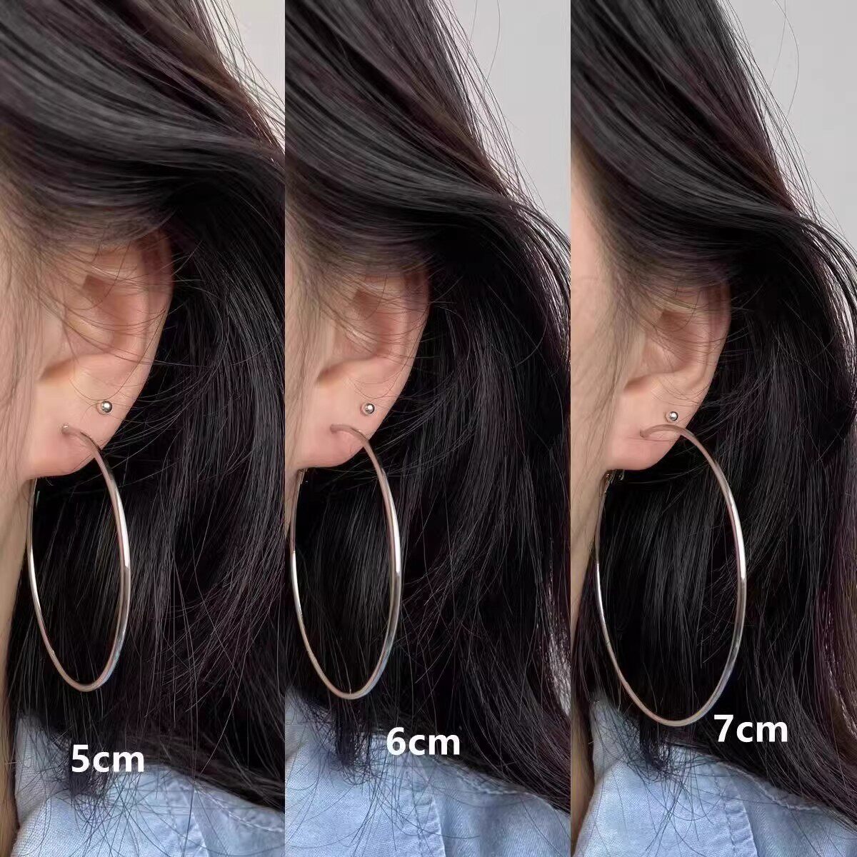 个性夸张耳环圈圈大钢圈极简风时尚耳钉圈环超细大直径钛钢银色