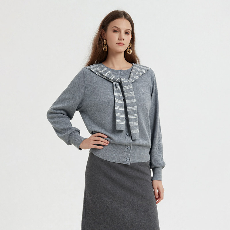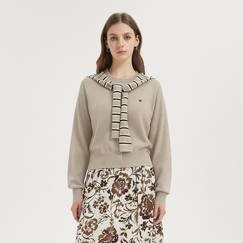 Petit Bari披肩领针织开衫女 撞色条纹小众上衣 温柔显白叠穿神器