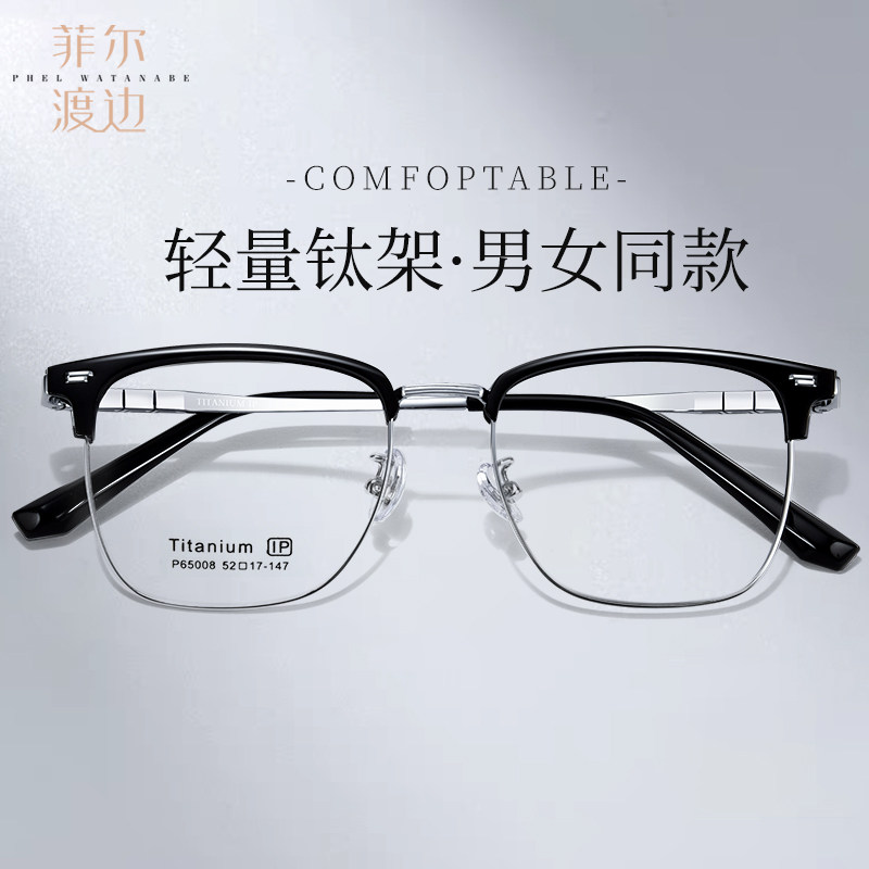 菲尔渡边钛架眼镜框男轻奢眉线半框镜架可配度数近视散光65008