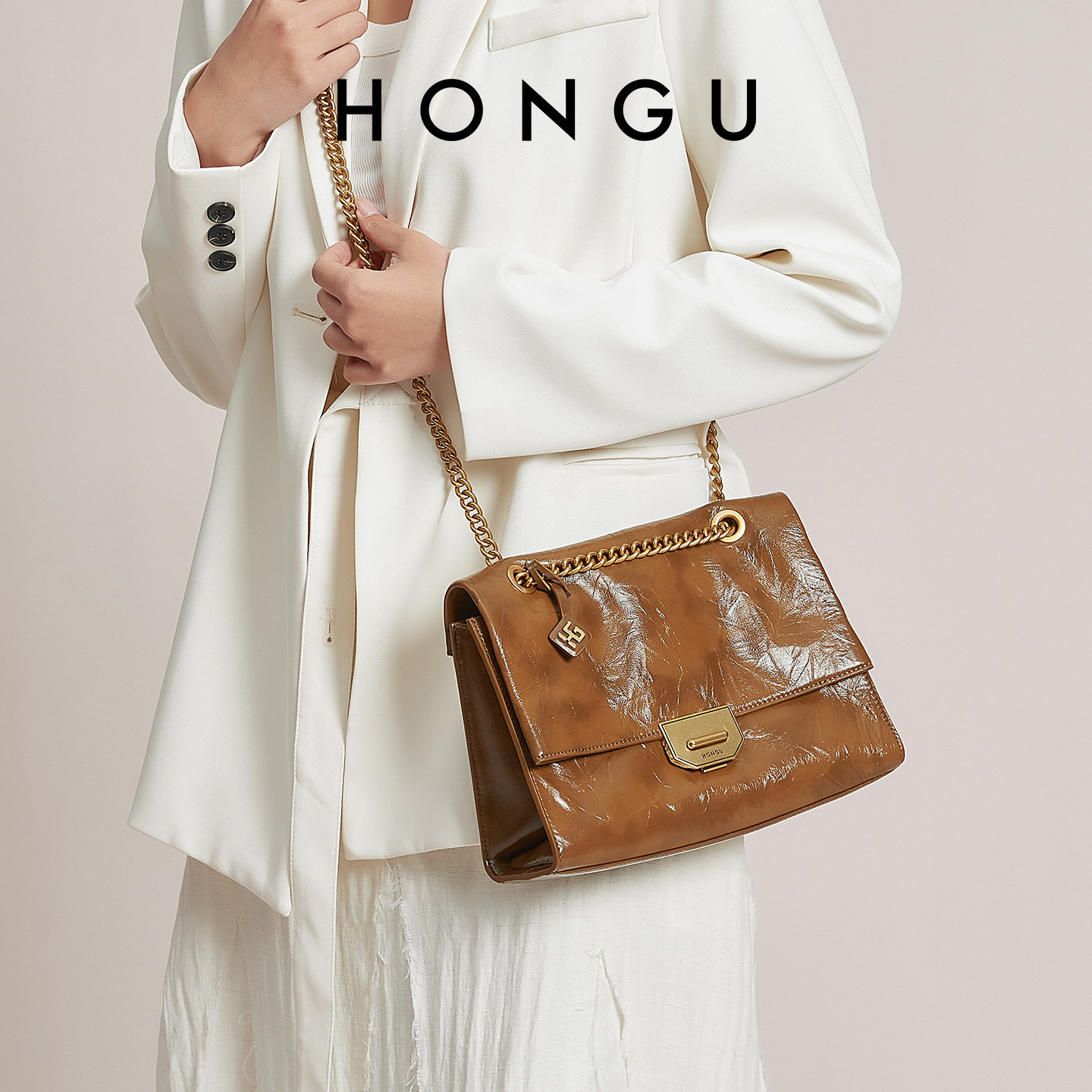 【明星同款】红谷包包新款抓花真皮单肩腋下包高级感斜挎包女士包