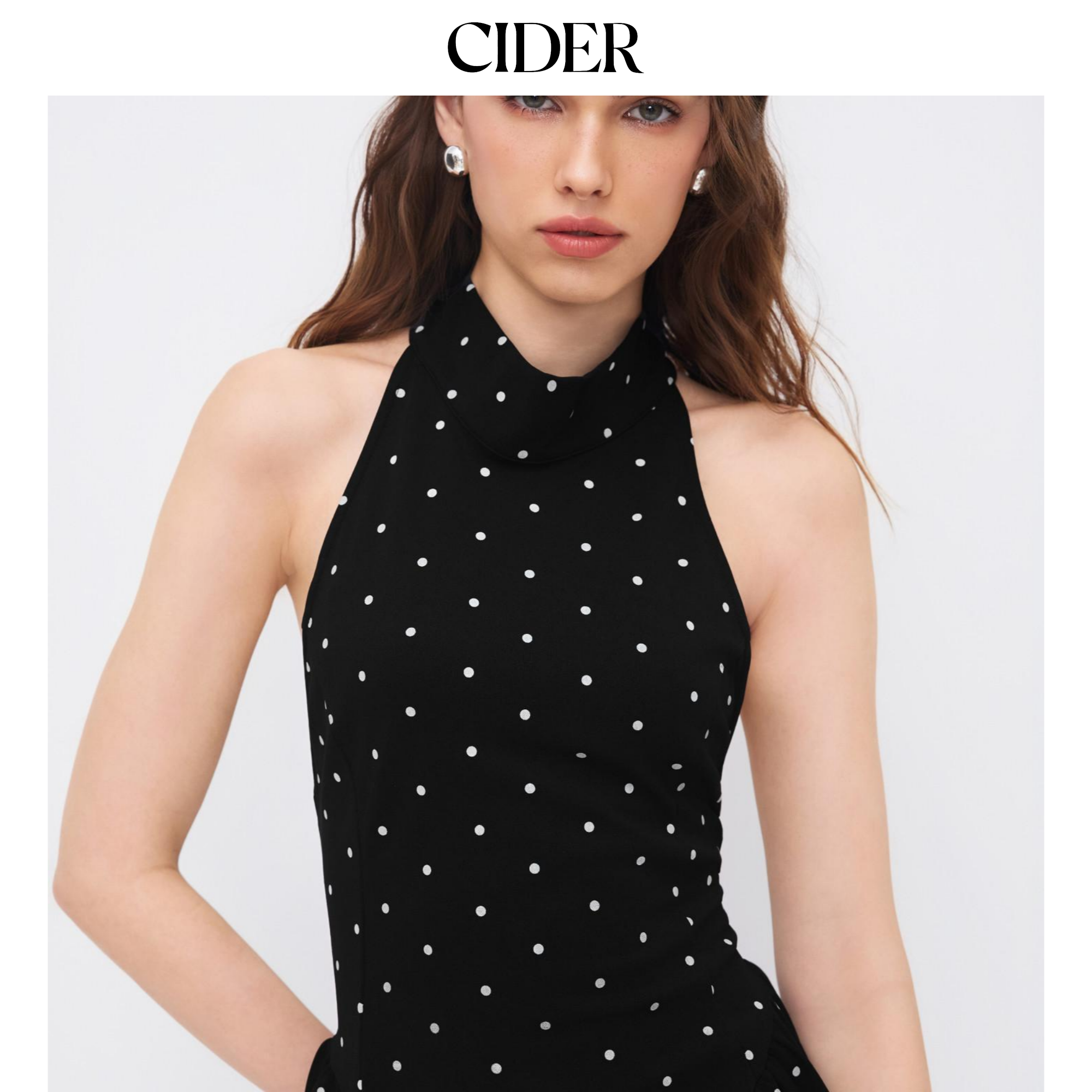 【明星同款】CIDER 挂脖波点露背短裙荷叶边连衣裙114600476