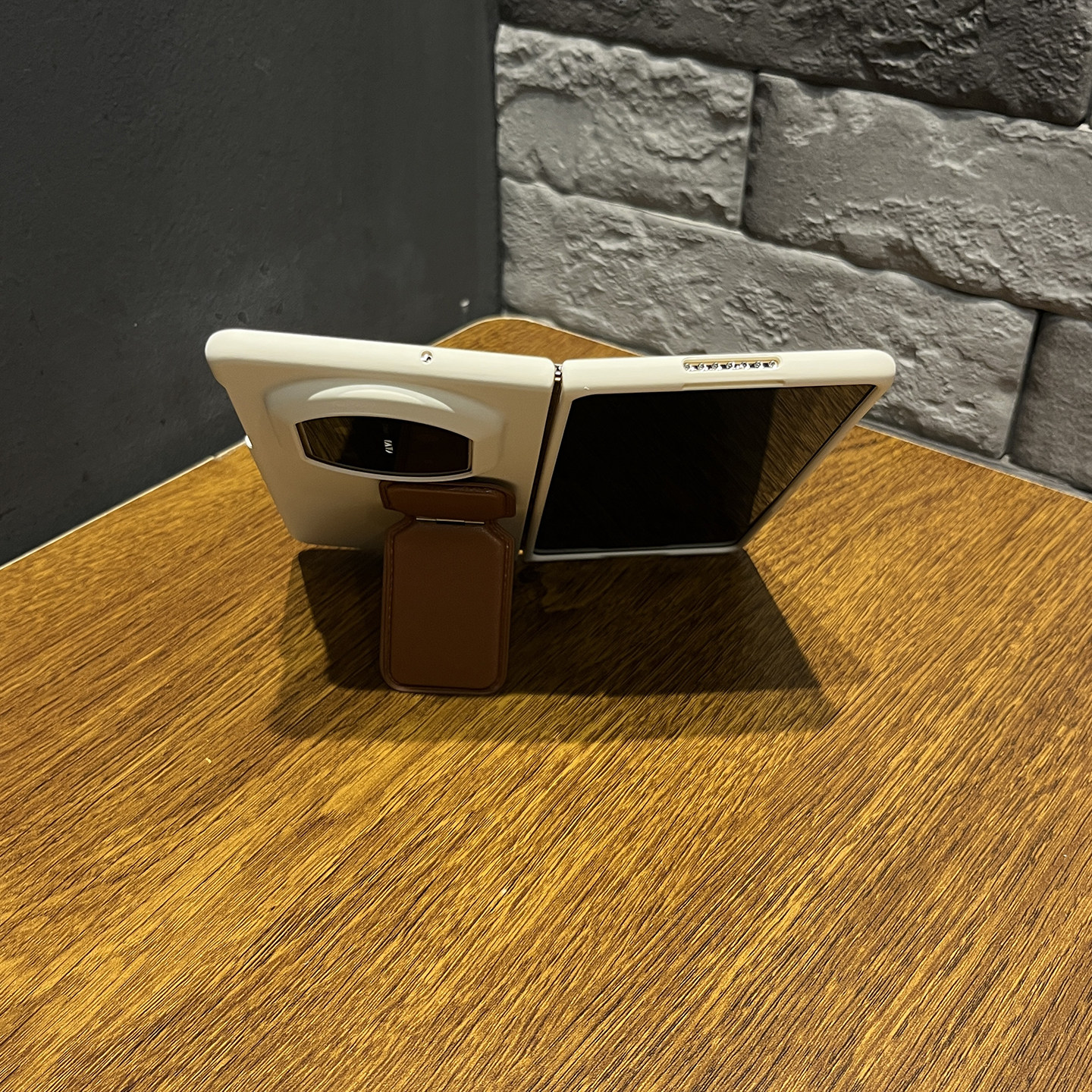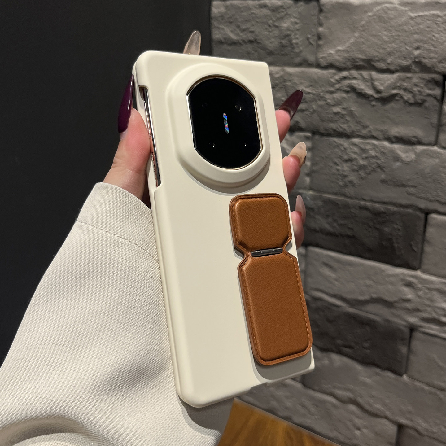 【带支架】小众肤感古董白皮质支架适用华为matex7手机壳新款X6/X5翻盖防摔男女荣耀magicV6保护套findN5潮流