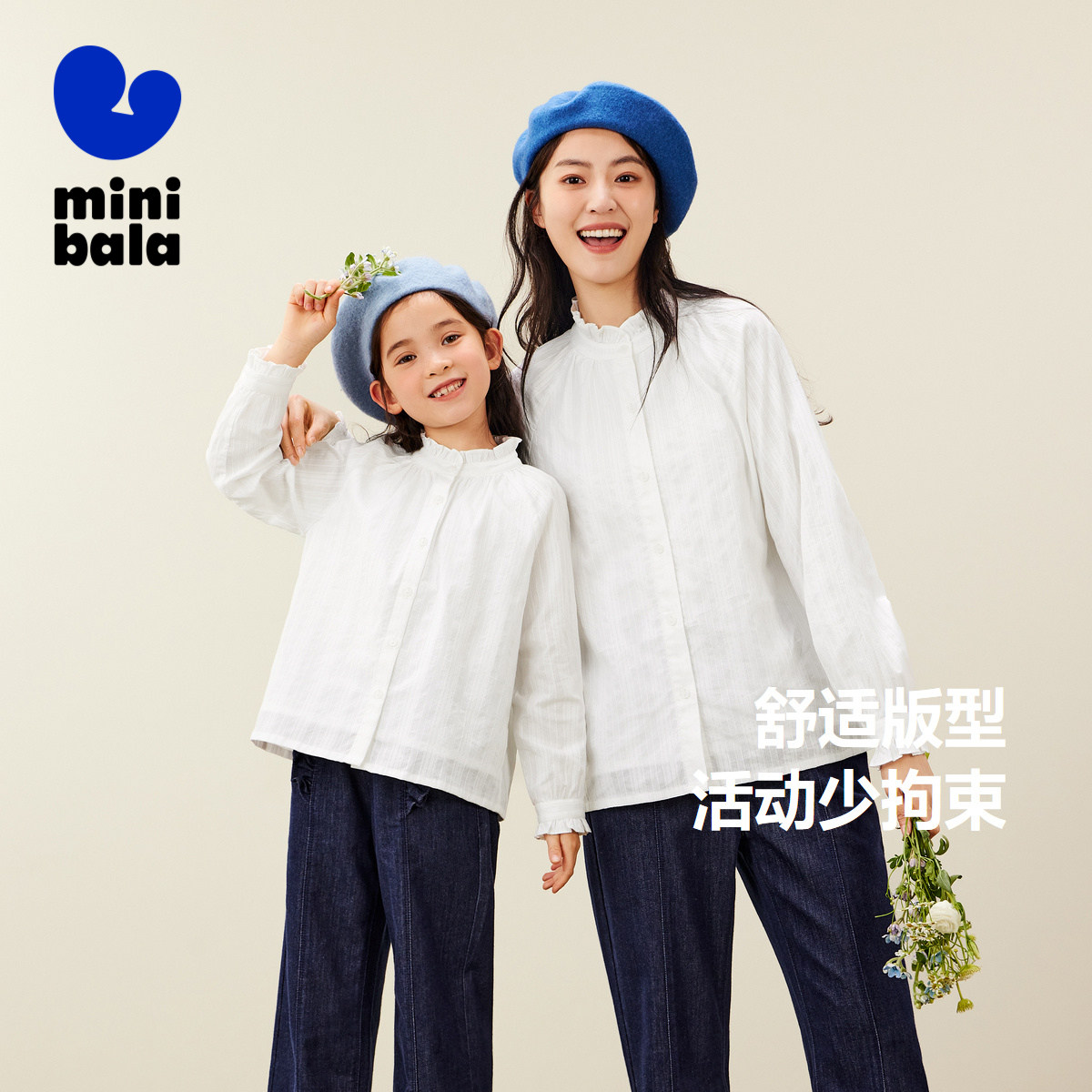 【mini亲子】迷你巴拉巴拉女童春新款木耳边上衣长袖衬衫