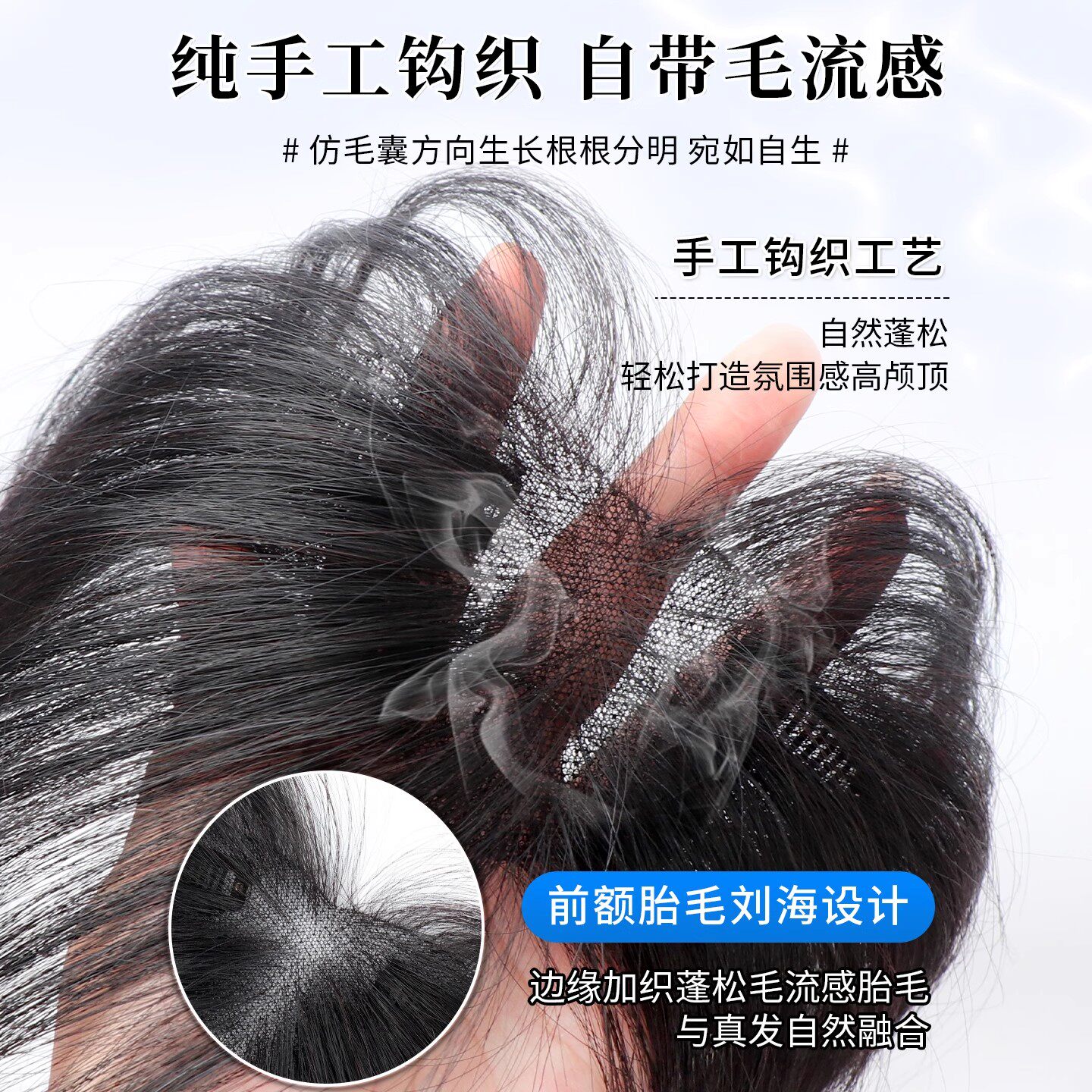 胎毛刘海假发女片头顶全真发补发遮鬓角自然前额真发发际线贴八字