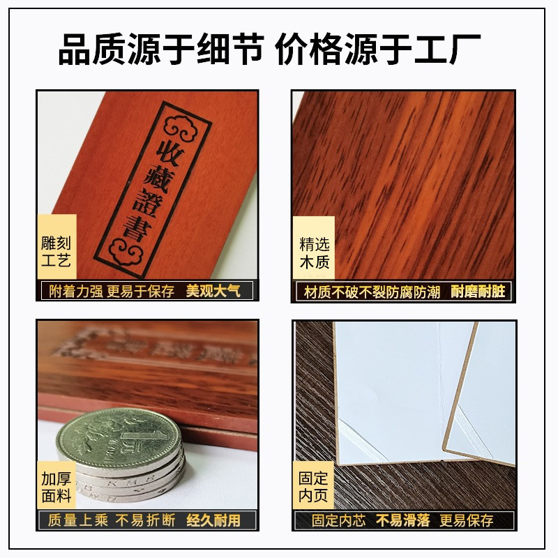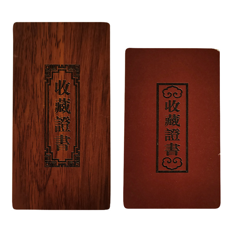 古玩字画鉴定收藏证书定制高档作品收藏壳套木质木板木纹艺术品证书定做证书封面logo钱币古董瓷器鉴定收藏证