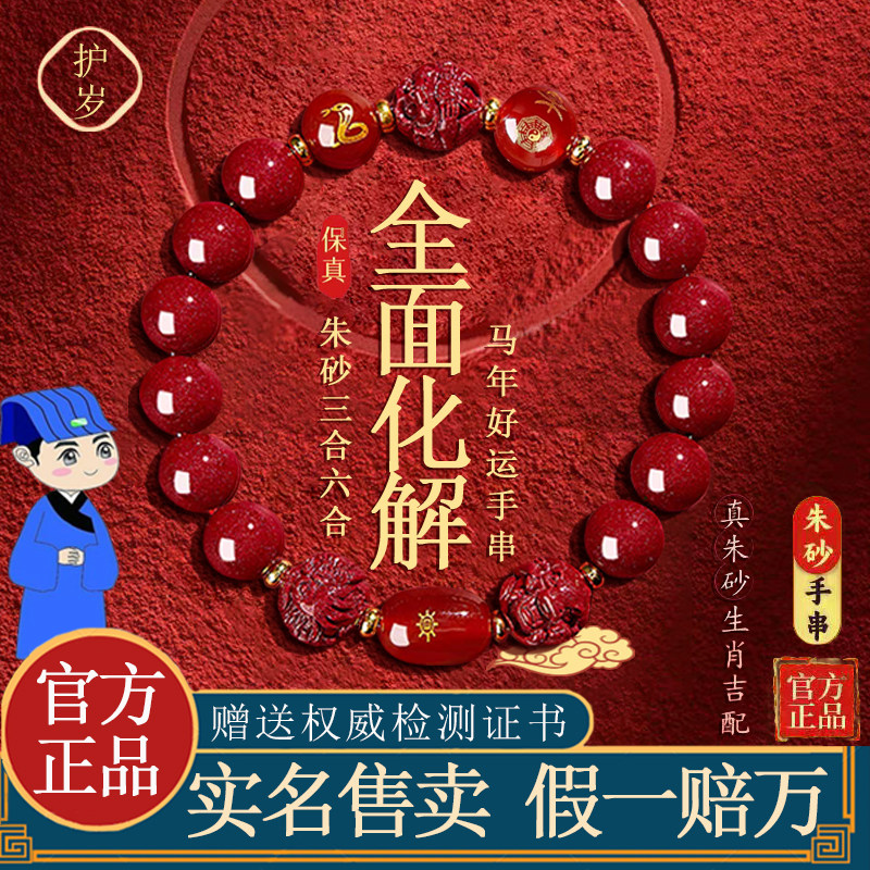 马年本命年朱砂手串真天然三合六合男女士佩戴手链正品官方旗舰店