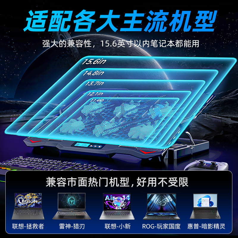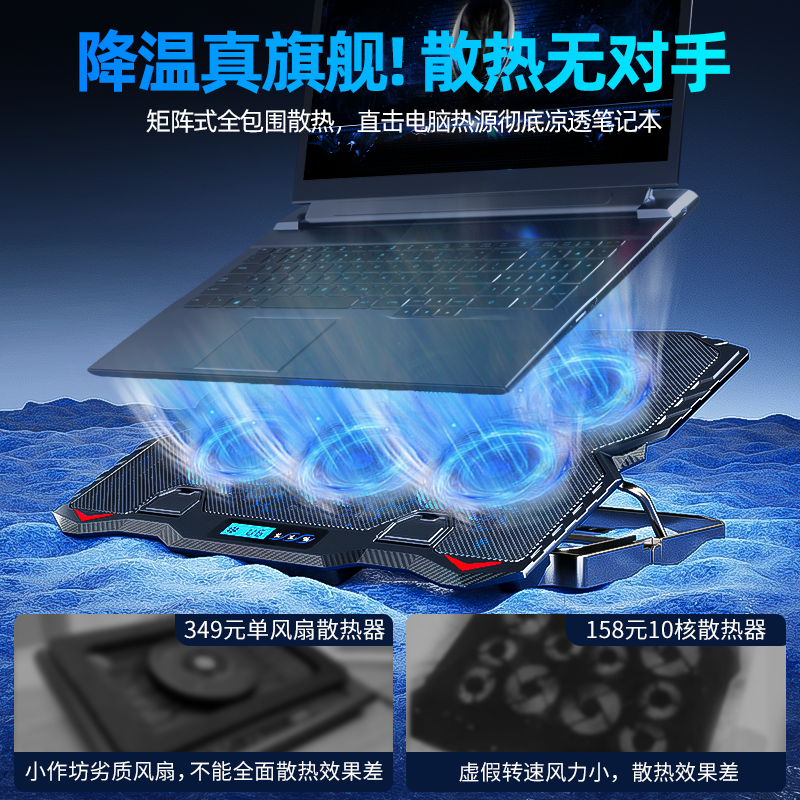 笔记本散热器底座14寸15.6寸游戏本手提电脑排风扇增高支架风冷降温垫板静音适用于联想华硕苹果惠普三星戴尔