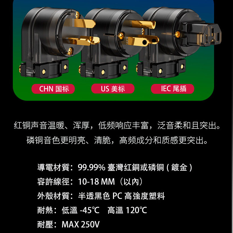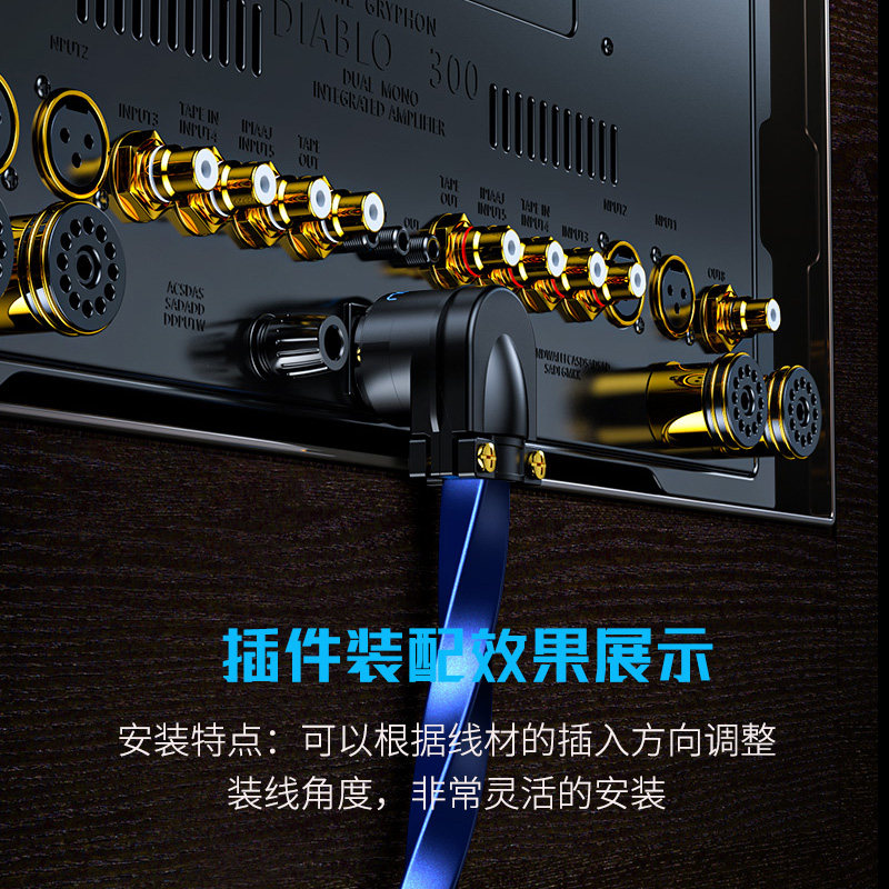 3100紫铜镀金L型90度弯插HIFI发烧音响功放美标国标电源弯头插尾
