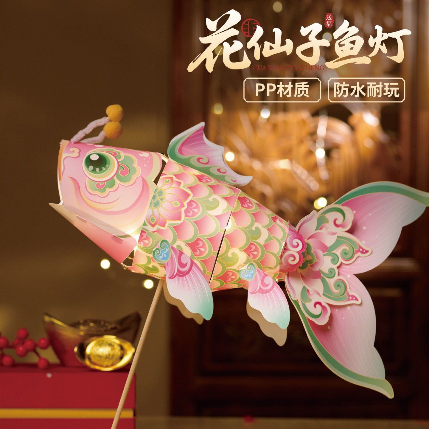 新年春节花仙子鱼灯手工diy灯笼制作材料包古风儿童手提元旦舞蹈道具锦鲤金鱼灯笼舞台装饰拍照花灯大号玩具