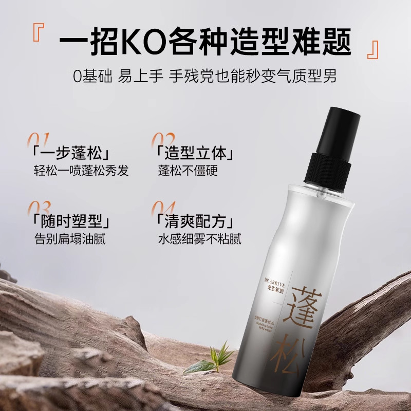 先生驾到男士免洗清香持续立体自然蓬松头发打底造型喷雾蓬松水